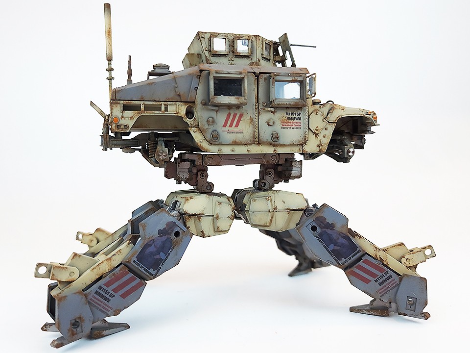 그러고 나서 두 녀석의 다리를 떼어내서 프레임에 연결을 해가지고 조립해논 험비를 얹어 봤는데