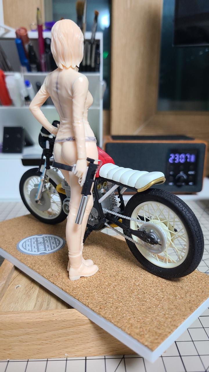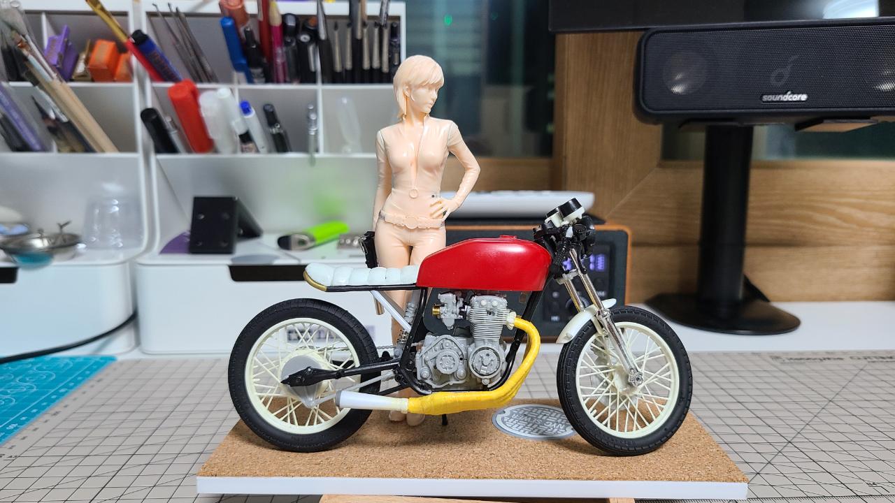 바이크는 프레임, 시트, 핸들, 머플러, 쇼바등을 개조와 자작을 하여 카페레이서 타입으로 만들었습니다.