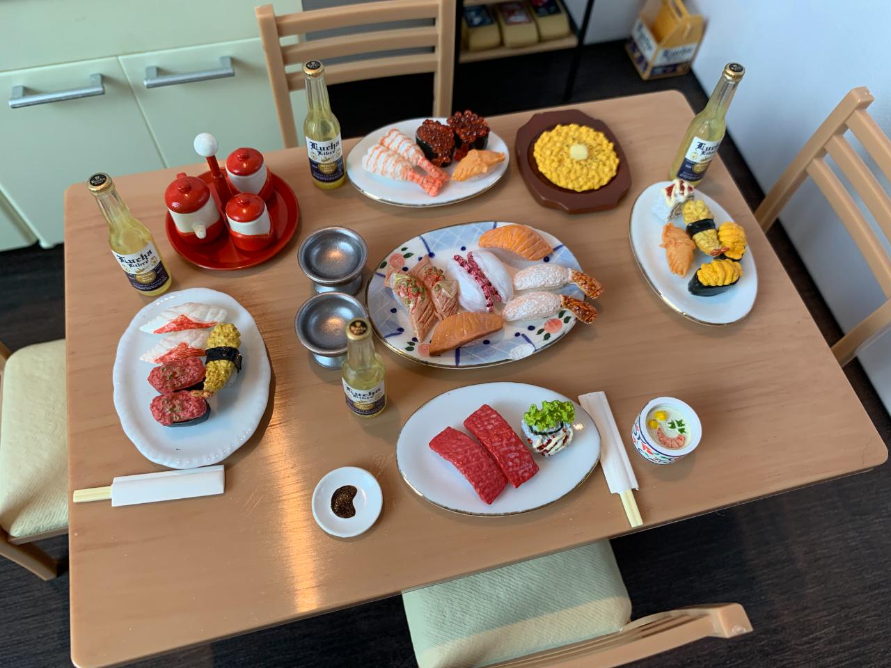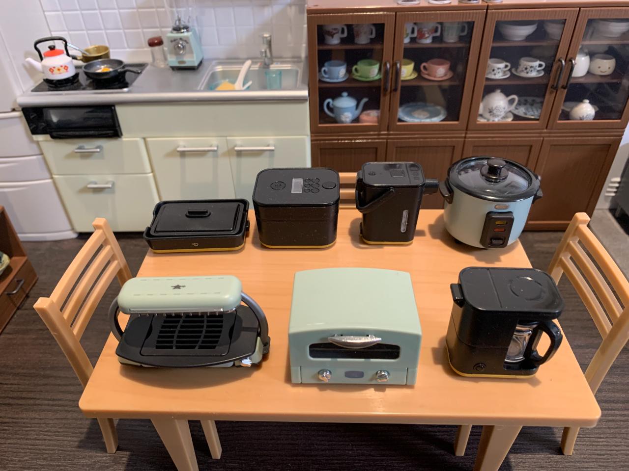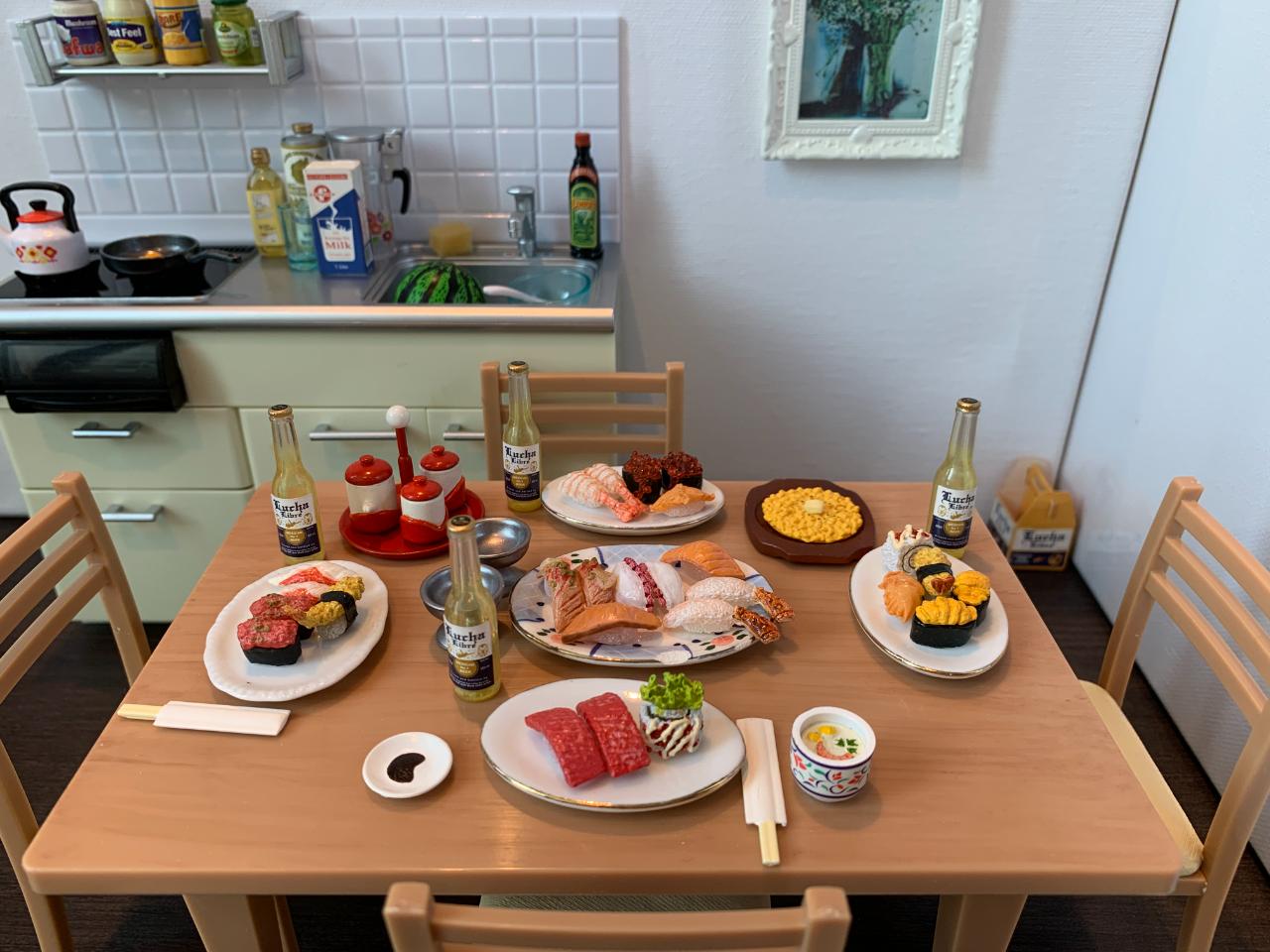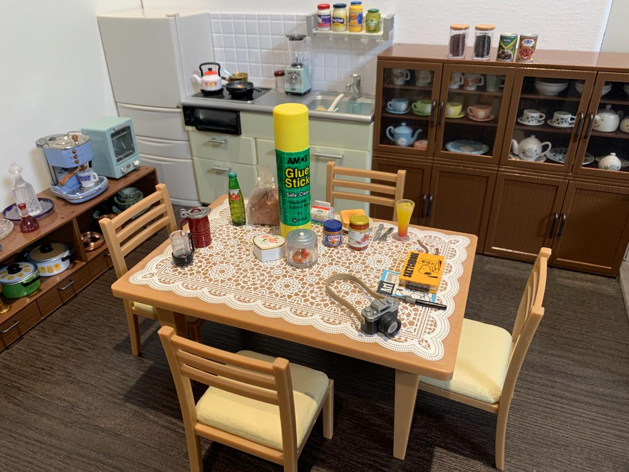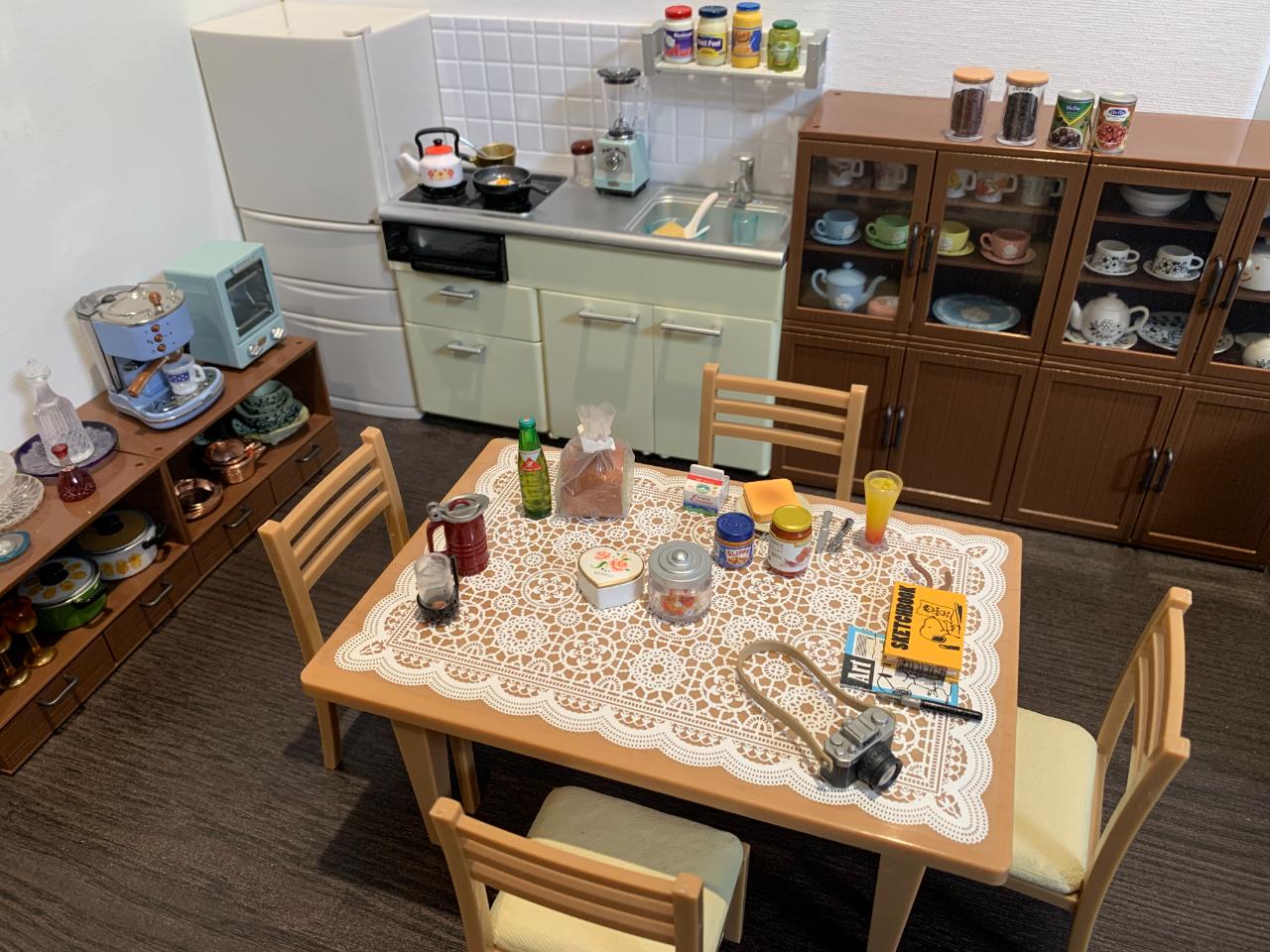 집 식탁위에 미니어처식탁과 다양한 소품들로 주방의 모습을 꾸며봤습니다...