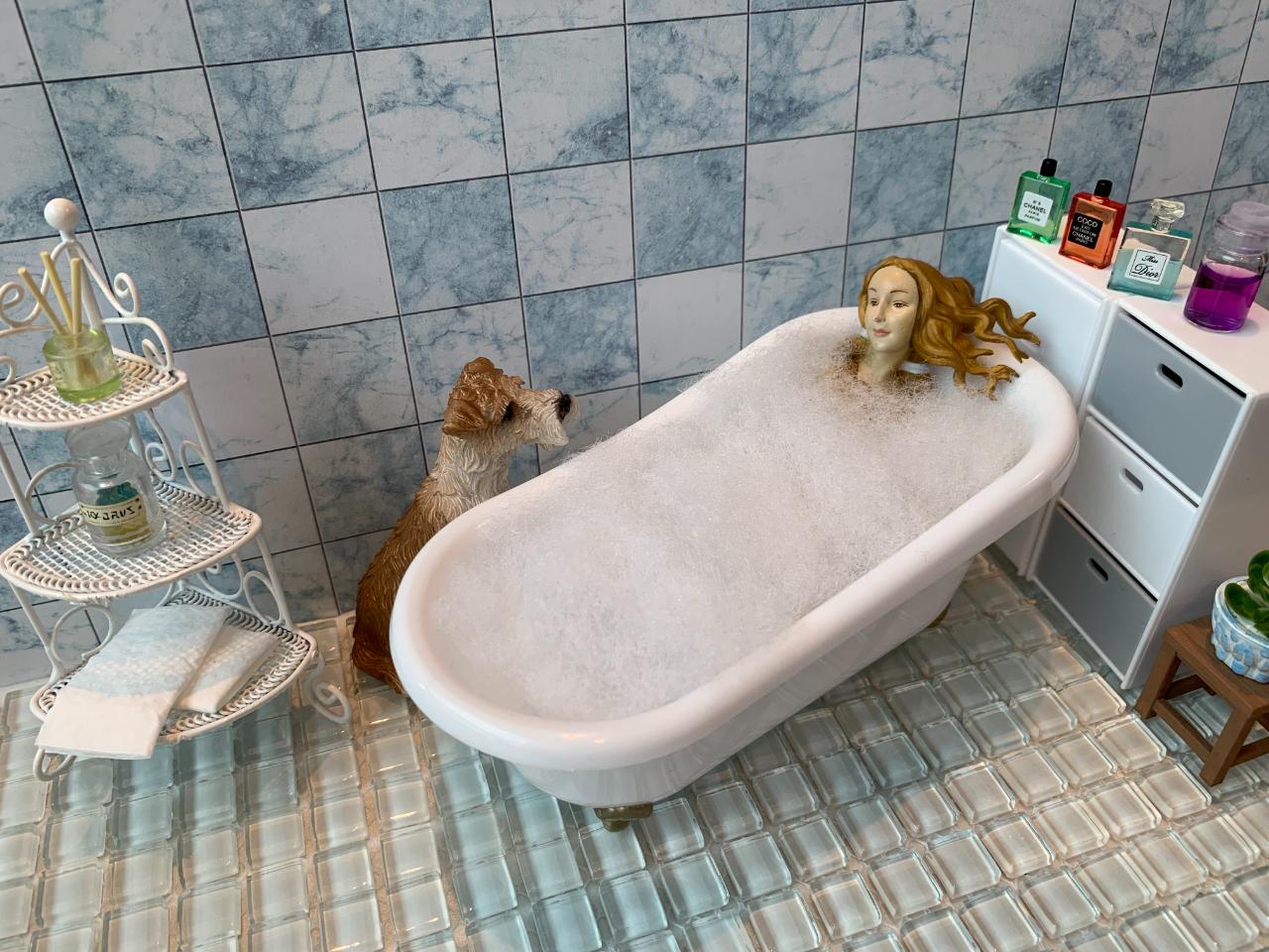 멍멍이 목욕시키려다 말안듣고 힘들게해서 지쳐 욕조에 누워있는 여집사와 물에 젖은 멍멍이의 모습입니다~ㅎ