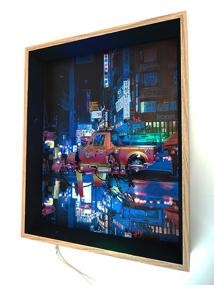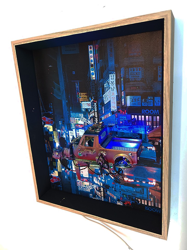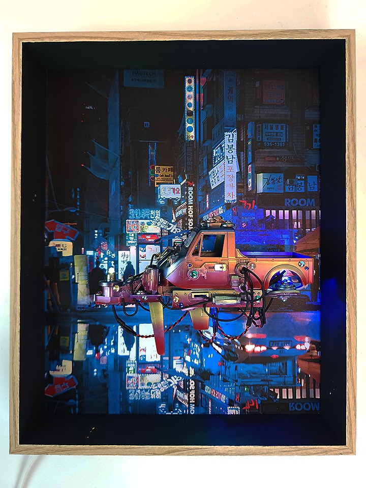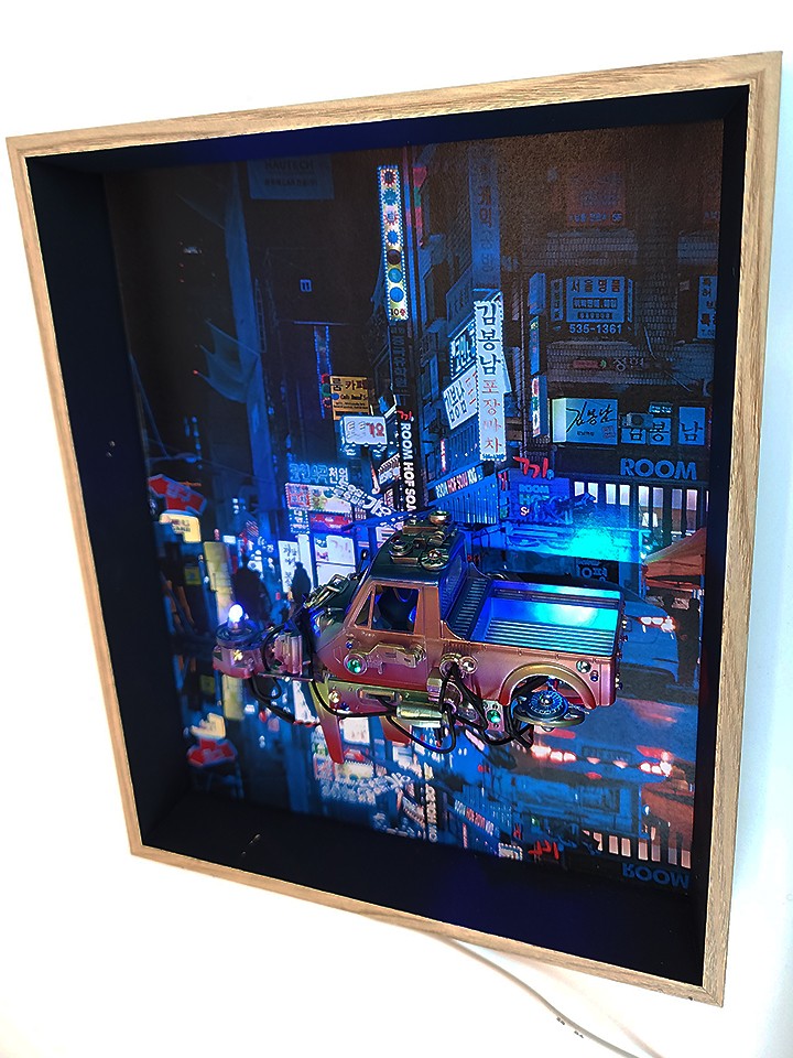 우리에겐 너무도 익숙하고 흔한 모습인데, 이게 외국인들에겐 디스토피아적인 미래처럼 여겨진다는 겁니다. 그래서 거기에 착안하여 이렇게 액자처럼 구성하여 작업을 해봤습니다.
