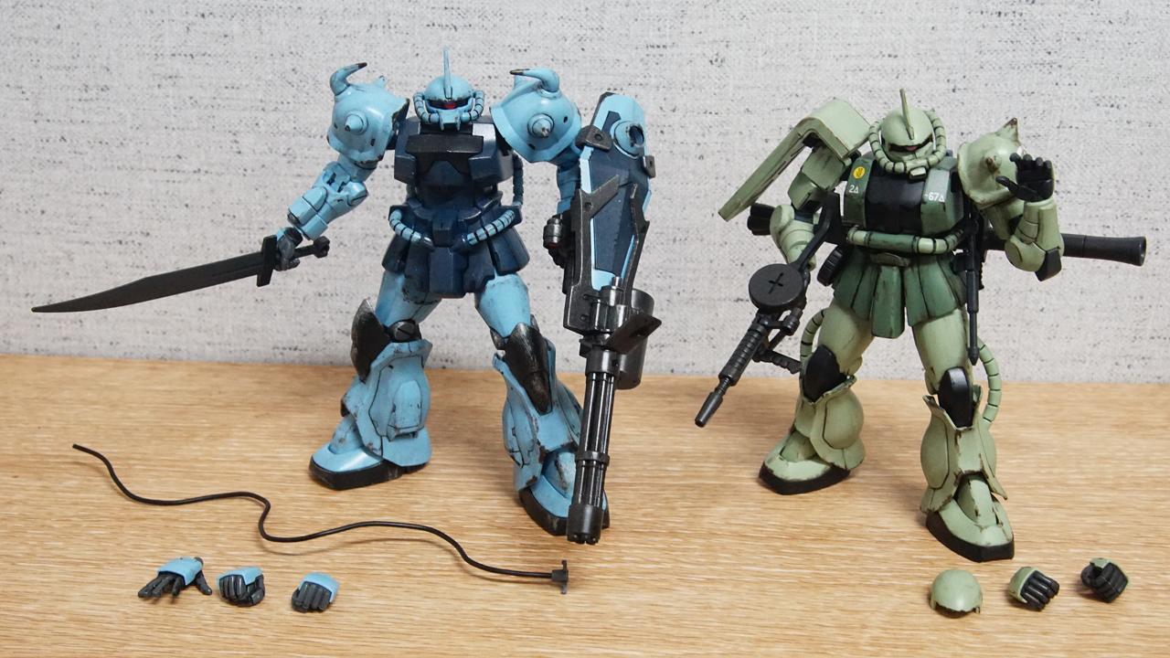 구프와 비교... 사진상에서는 빠졌는데 자쿠 II가 주먹쥔 오른손 + 앞서 말씀드린 무장파지 왼손이 더 있습니다.