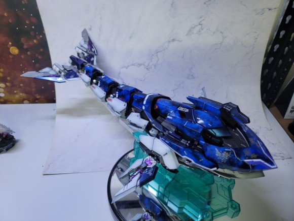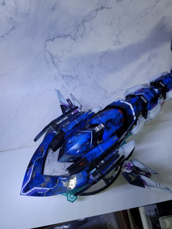 메탈릭 도색에 바다의 느낌을 전달하기 위한 도색 적용 및 은장 무늬 습식데칼등을