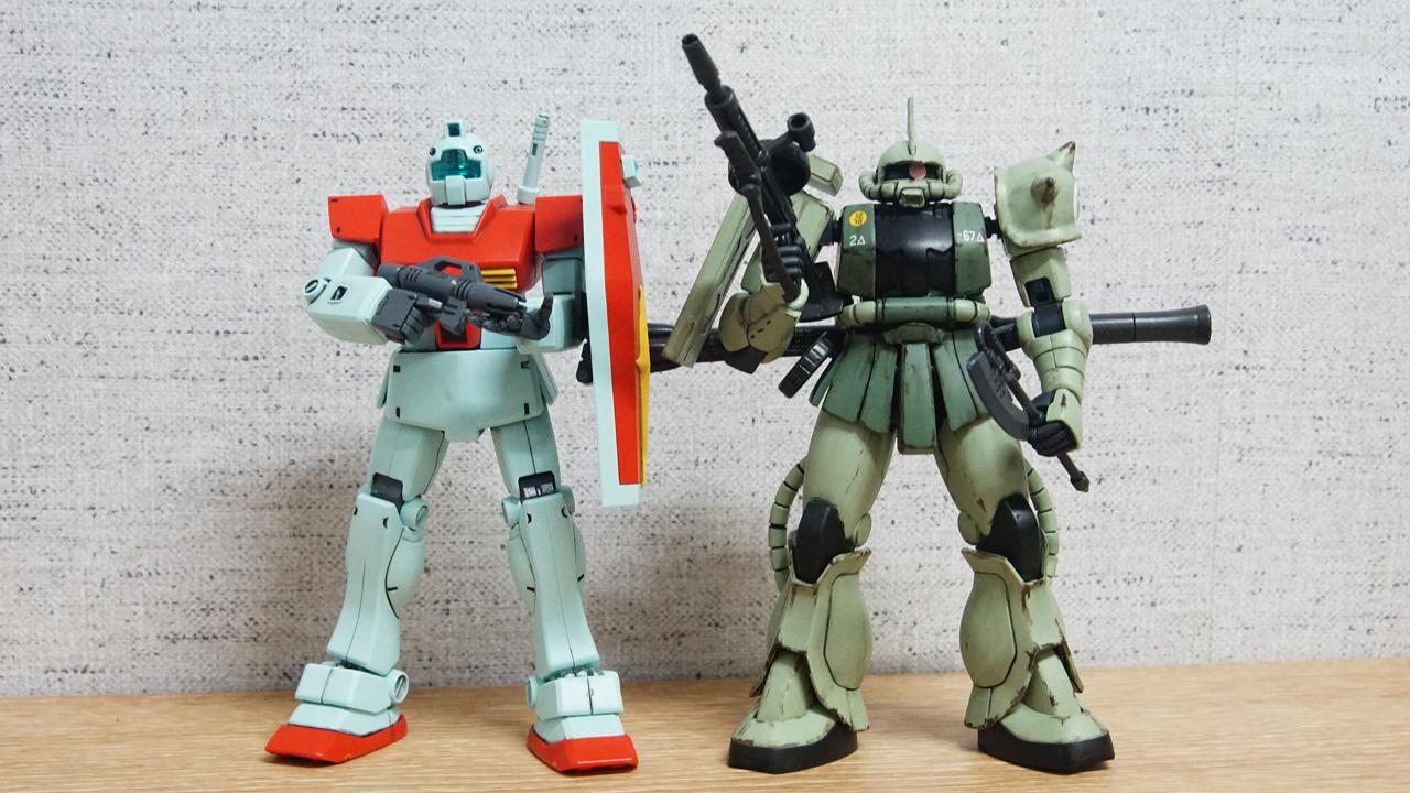 연방과 지온의 양산형 병기들. 현실로 보면 셔먼과 4호전차 정도의 라이벌 아니였을까요? 짐의 단순한 디자인이 오히려 양산형 병기라는 설정에 가장 부합하는 모습인 듯 합니다. 디 오리진 속 디자인은 RX-78-2와도 비슷하게 만들어주면서 양산 병기라는 현실적 요소를 잘 반영한 듯 하고...