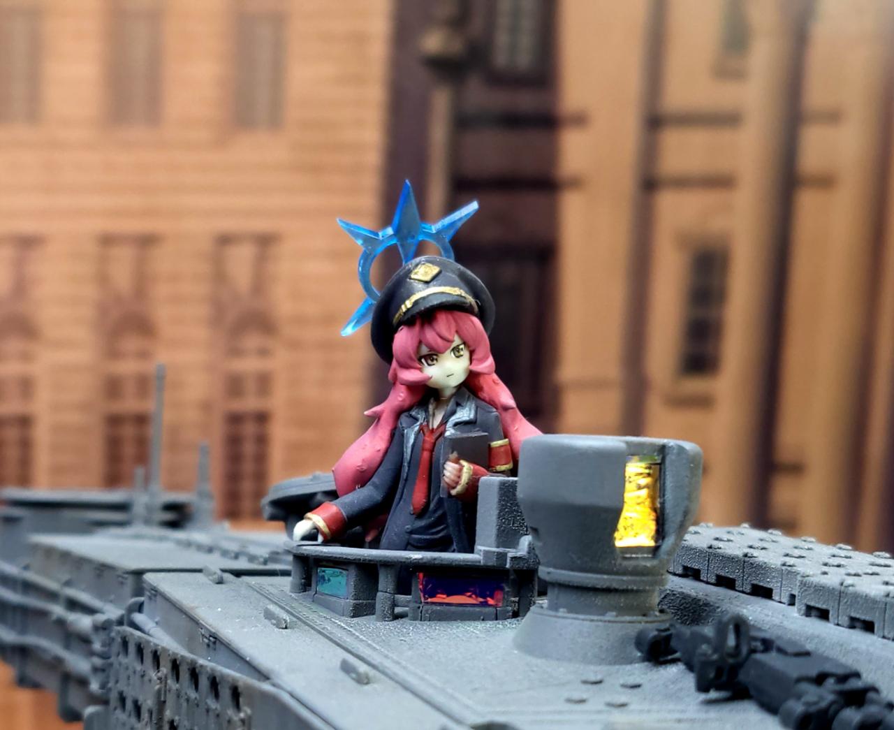 국산 모바일게임 블루아카이브에 등장하는 전차장 캐릭터 나츠메 이로하 캐릭터의 피규어와 탑승 전차를 완성했습니다