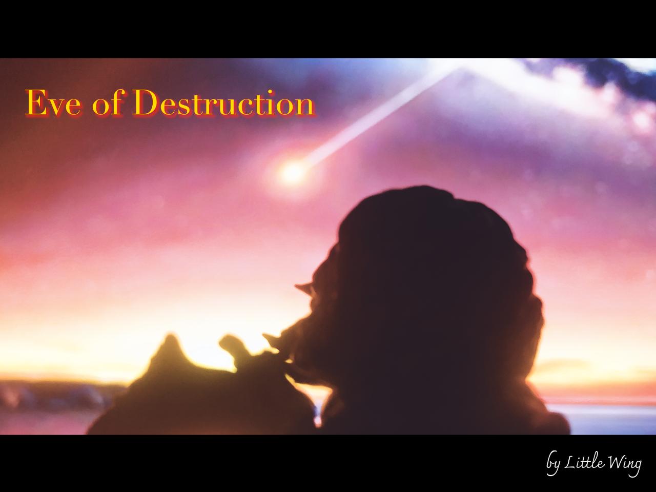 알수 없는 거대한 무언가가 밤하늘에서 떨어집니다. 그걸 바라보고 있는 소녀의 표정...<멸망의 밤> 입니다.