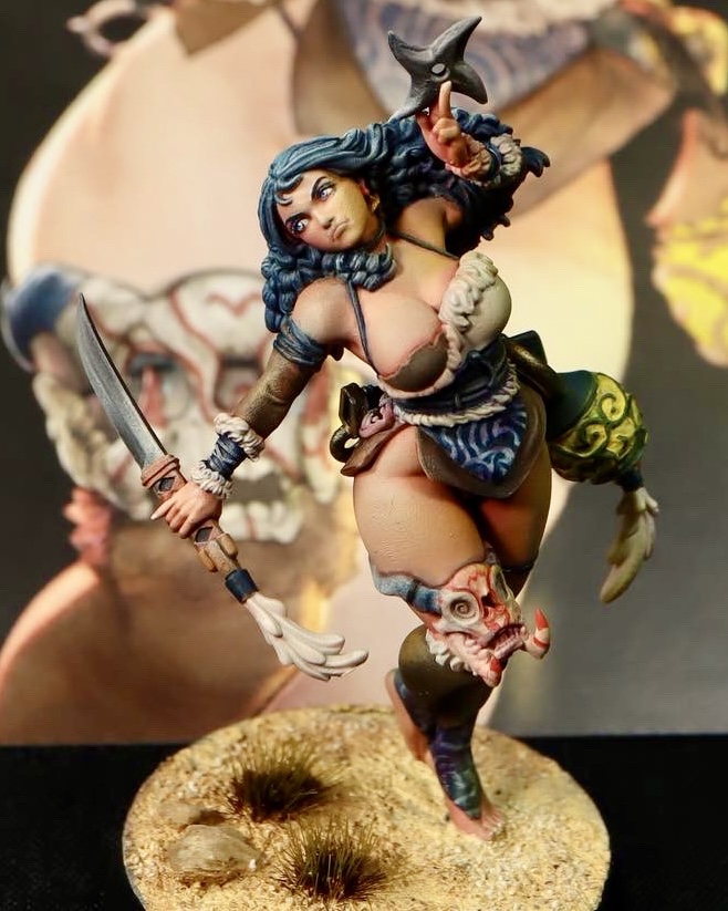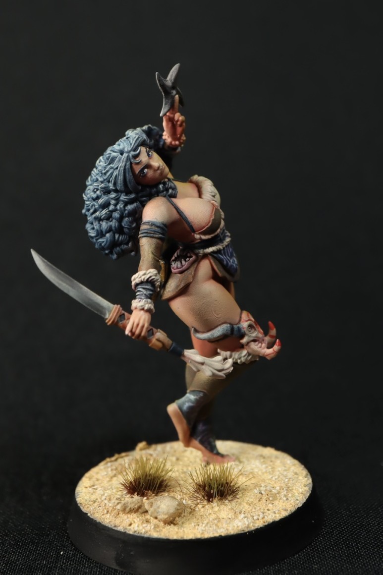 무릎위에 마스크를 걸고 있습니다. 초기에 이빨이 부러져 난리를 피운 바로 그 녀석입니다…앞치마(?) 부분의 디테일 문양 그리고 쉐이드는 보라빛으로 넣어줬는데… 잘 안보이나요…