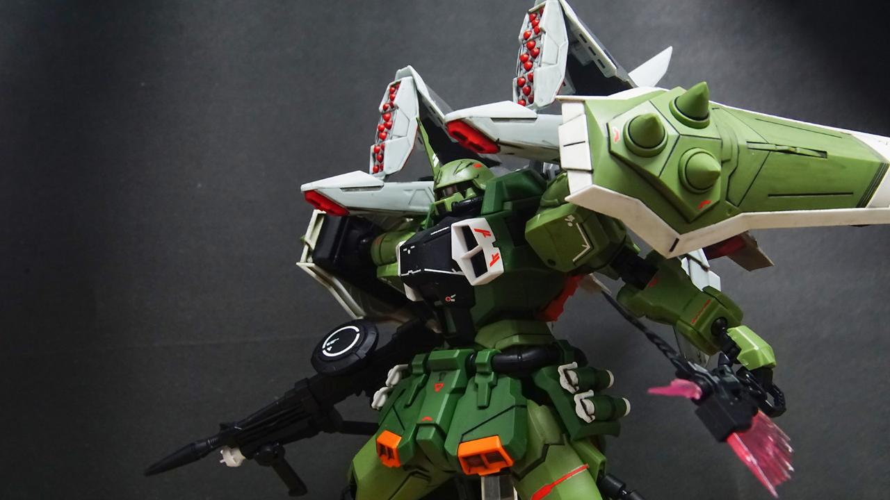 일반적인 자쿠 워리어의 모습도 훌륭합니다. 사실 제가 자쿠 워리어에 관심을 갖게 된건 자쿠 워리어 팬아트가 석양이 배경인지... 사격 자세를 잡고 모노 아이에 붉은 빛이 들어온 모습에 어릴때부터 관심이 갖기 때문이지요. 작년 쯤에서야 친구들에게 그게 자쿠 워리어임을 알게 되었는데... 처음 이 키트를 살땐 그런 이유로 자쿠 워리어로만 쓰겠다고 위자드 팩은 장터에 내놓으려고 했습니다만... 이거 아무래도 위자드 팩이 있어야 제 값을 하겠구나 싶어서 결국 노선을 지금과 같이 바꾸었습니다. 그런데 리뷰를 보던 중 알게 된 사실인게 일반 자쿠 워리어는 지상 작전을 하고 블레이즈는 우주에서 쓴다더군요...