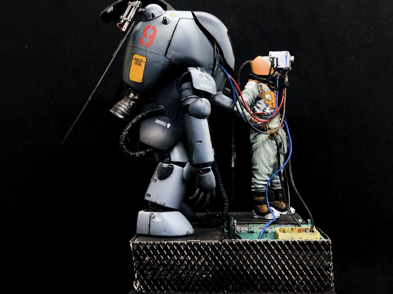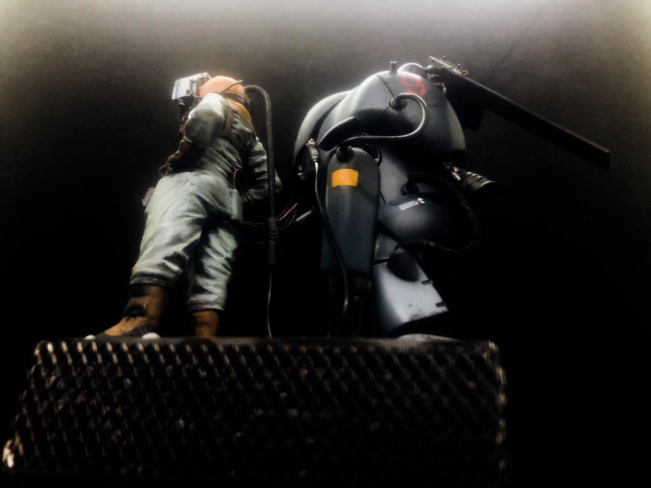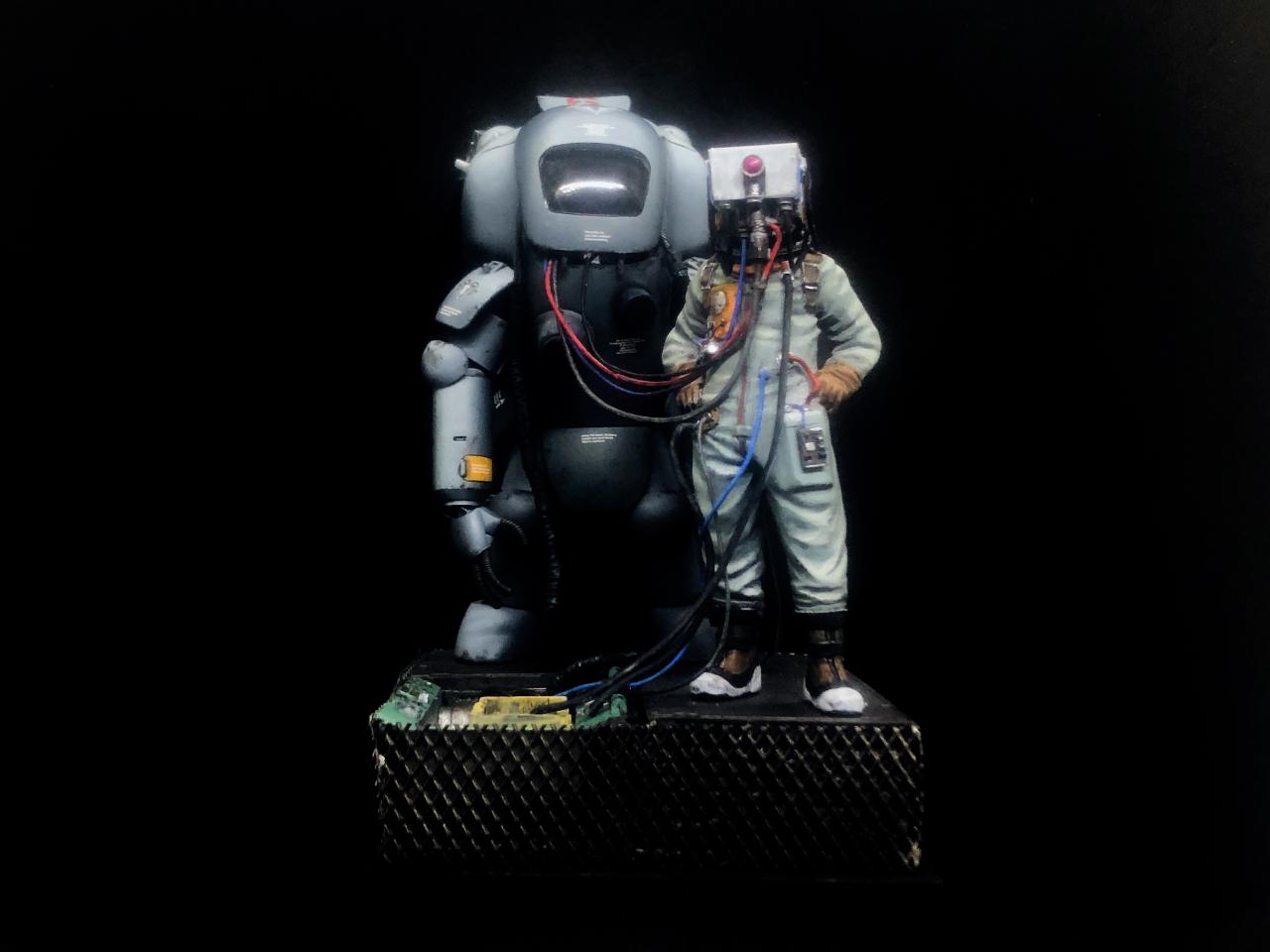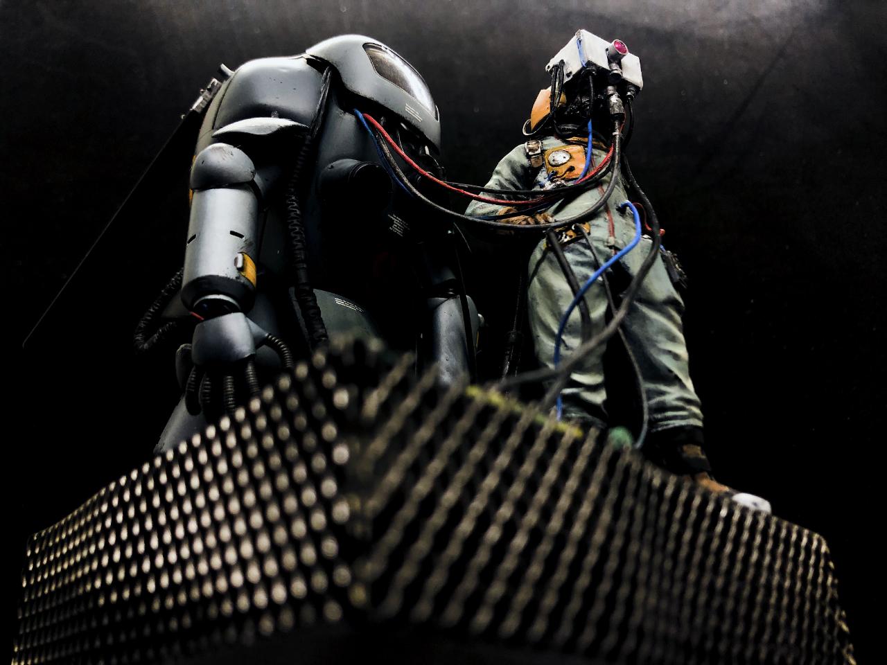 에이스 파일럿이었던 연인의 뇌가 이식된 AI 자율 전투기체와 자신의 뇌를 동기화 하고있는 어느 병사의 모습.