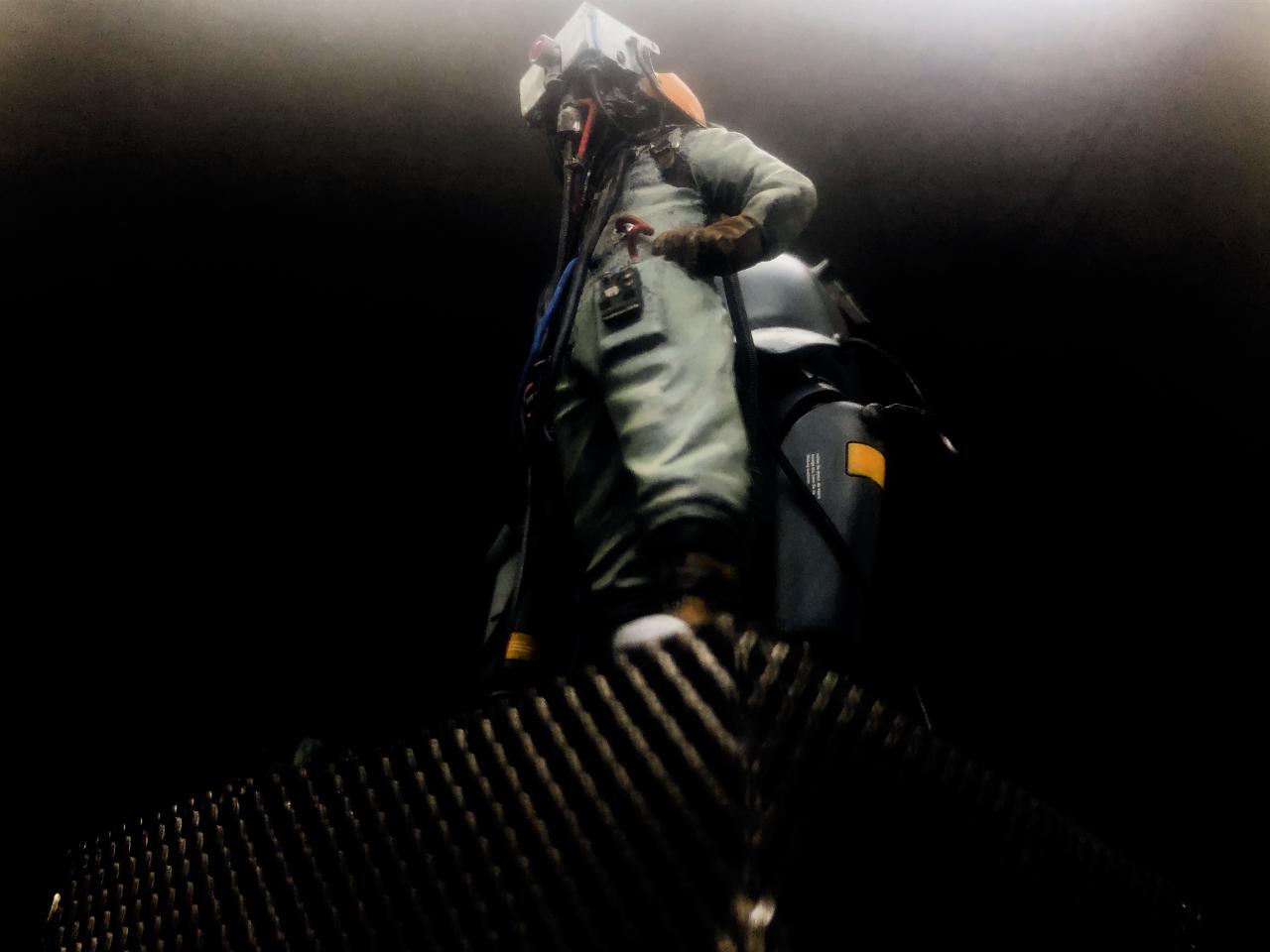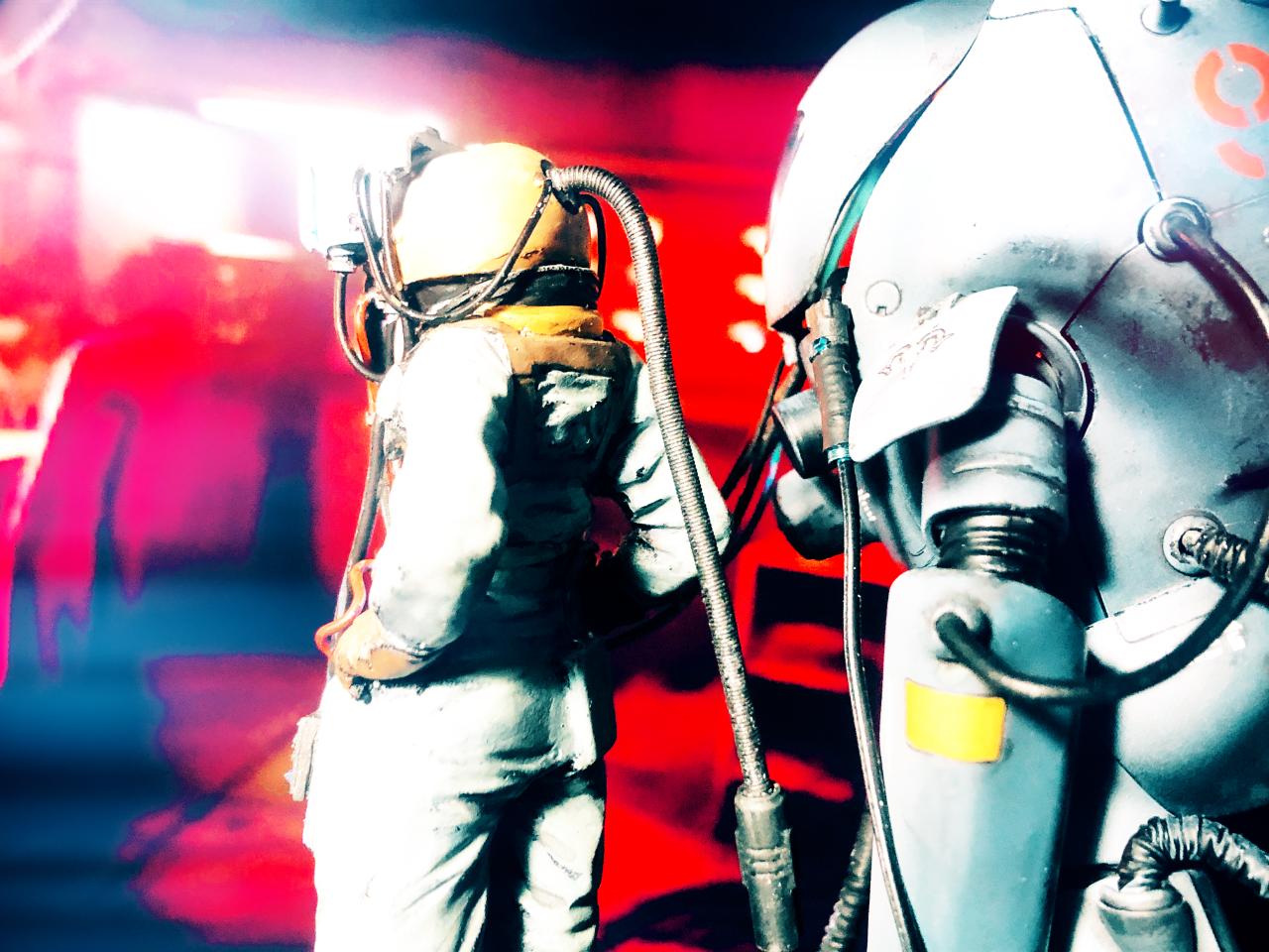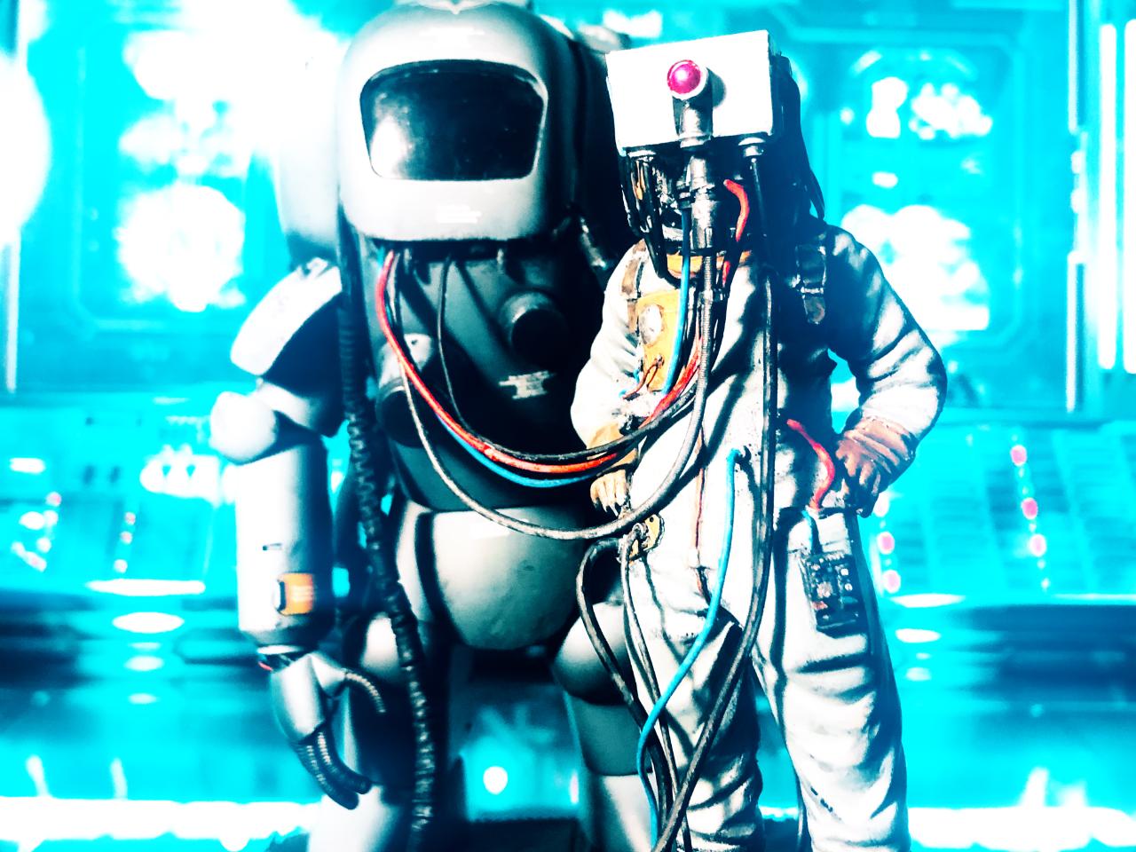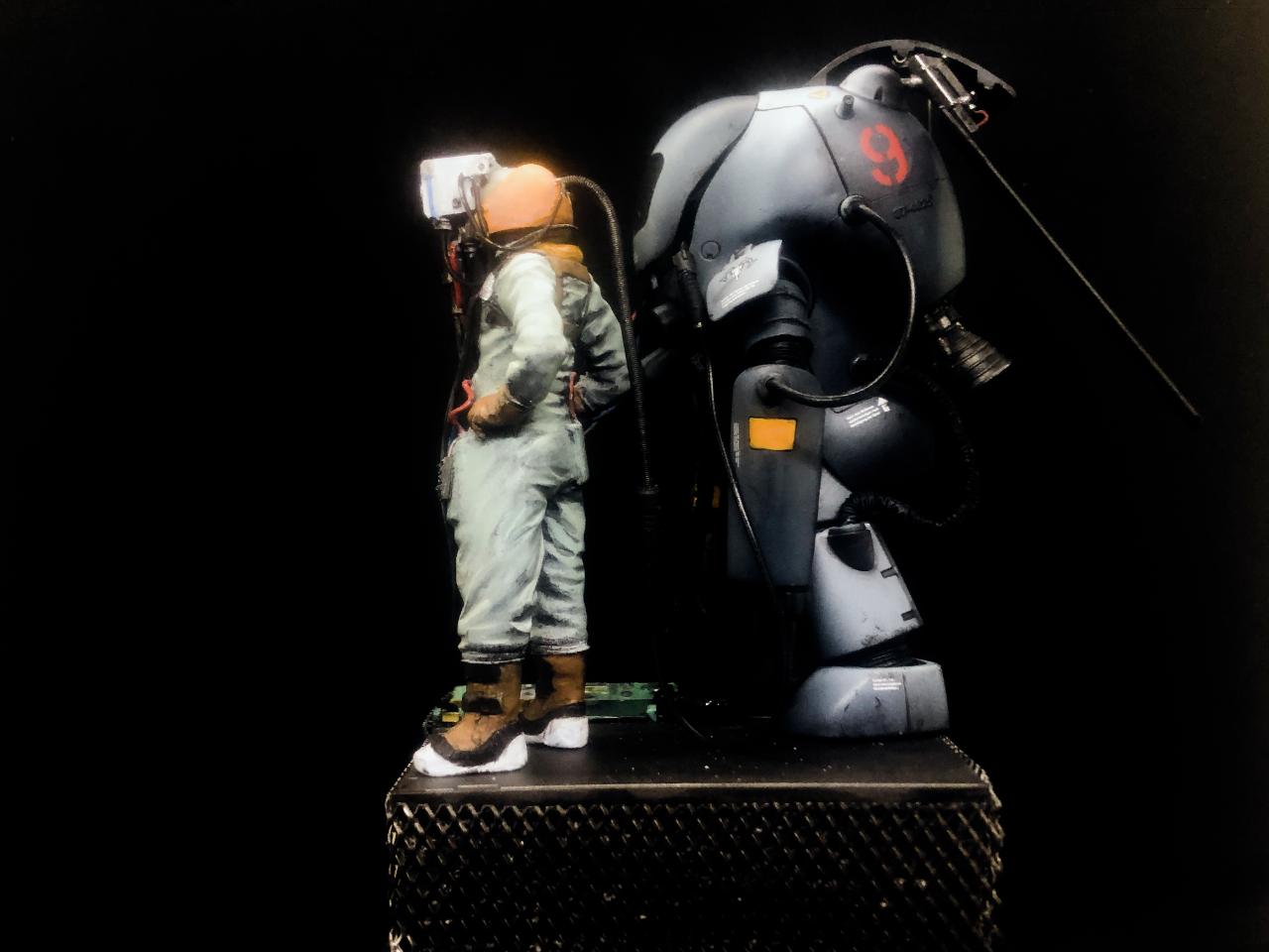 에이스 파일럿이었던 연인의 뇌가 이식된 AI 자율 전투기체와 자신의 뇌를 동기화 하고있는 어느 병사의 모습.
