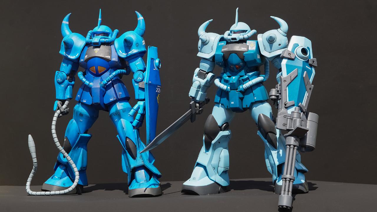 이번에도 무도색 + 씰(이번에는 건식 데칼도 사용) + 무광 마감과 검정 패널라이너의 조합입니다. 다만 이번에는 MG 스케일에도 아주 작은 치핑 자국과 오랜만에 파스텔을 꺼내서 모서리 선 강조를 해보았습니다. 일러스트랑 국내외 자료들을 보다보니 제가 어릴때 TV 채널 돌리다가 잠깐 본거 같은 <건담 빌드 파이터즈> 작품 속 람바 랄이 자신이 만든 HGUC 구프 완성작을 주인공에게 소개해주는 장면을 보았는데 거기서 묘사된 구프의 모습이 마음에 들었습니다.