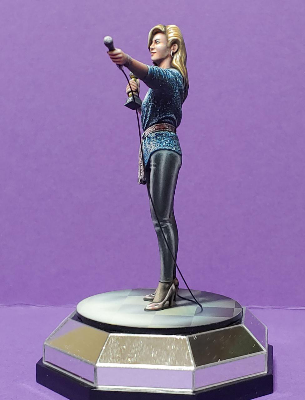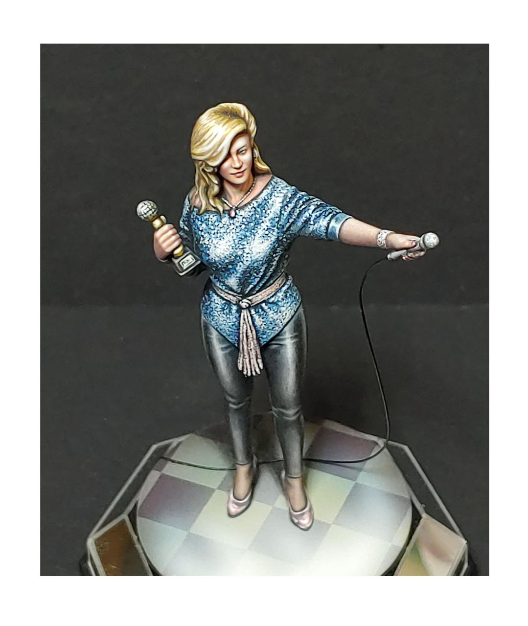 캠퍼스 프랜즈셋2에 있는 셀카찍는 인형을 개조해서 7.8십 년대 팝가수 스타일로 개조를 해봤습니다. 7말 8초쯤 될라나요? 미러볼 트로피를 들고 마이크는 관객들에게 돌리는 포즈 입니다. 스케일은 1/24입니다.