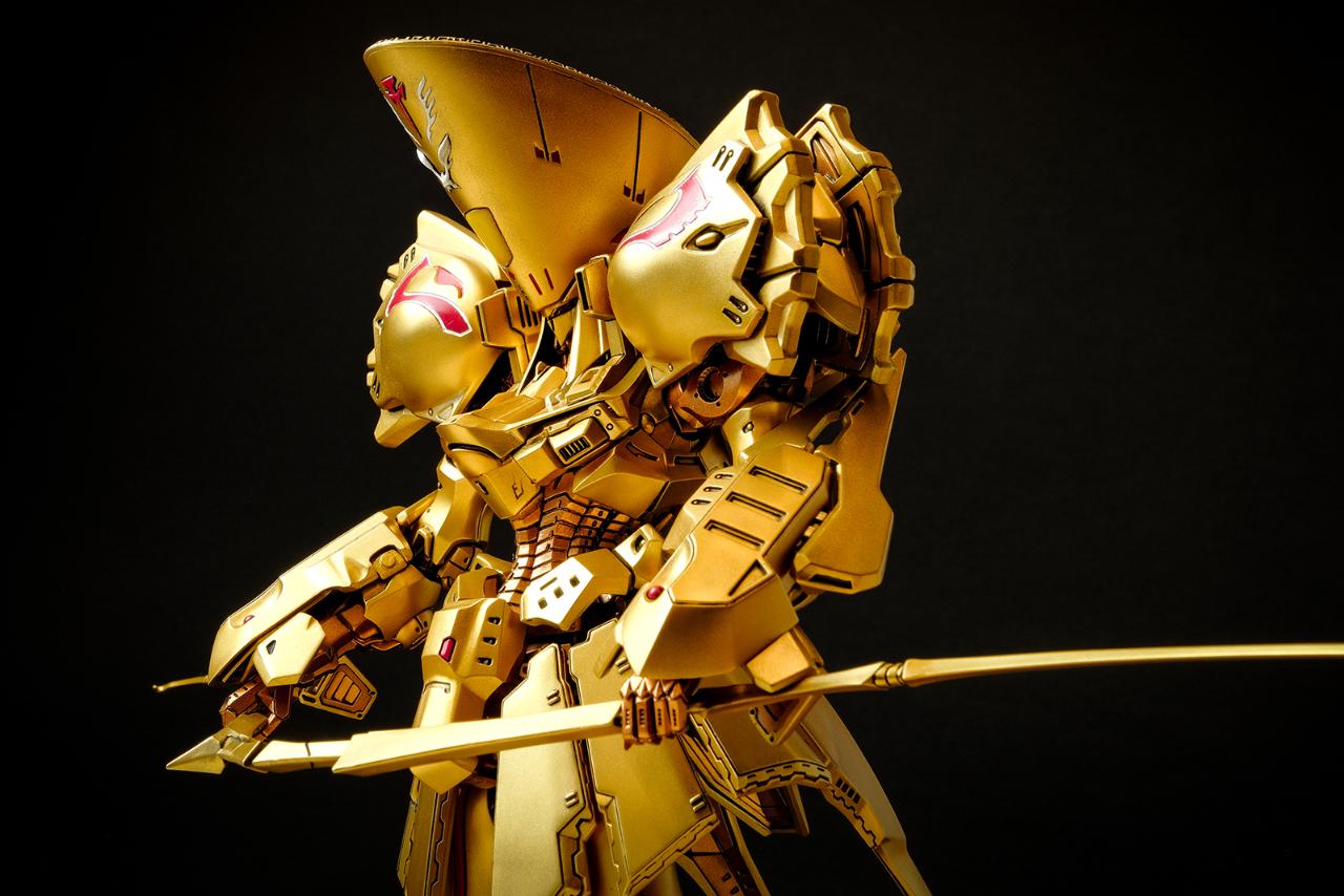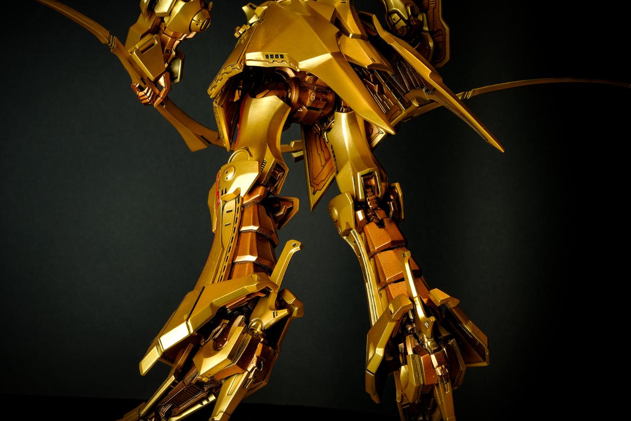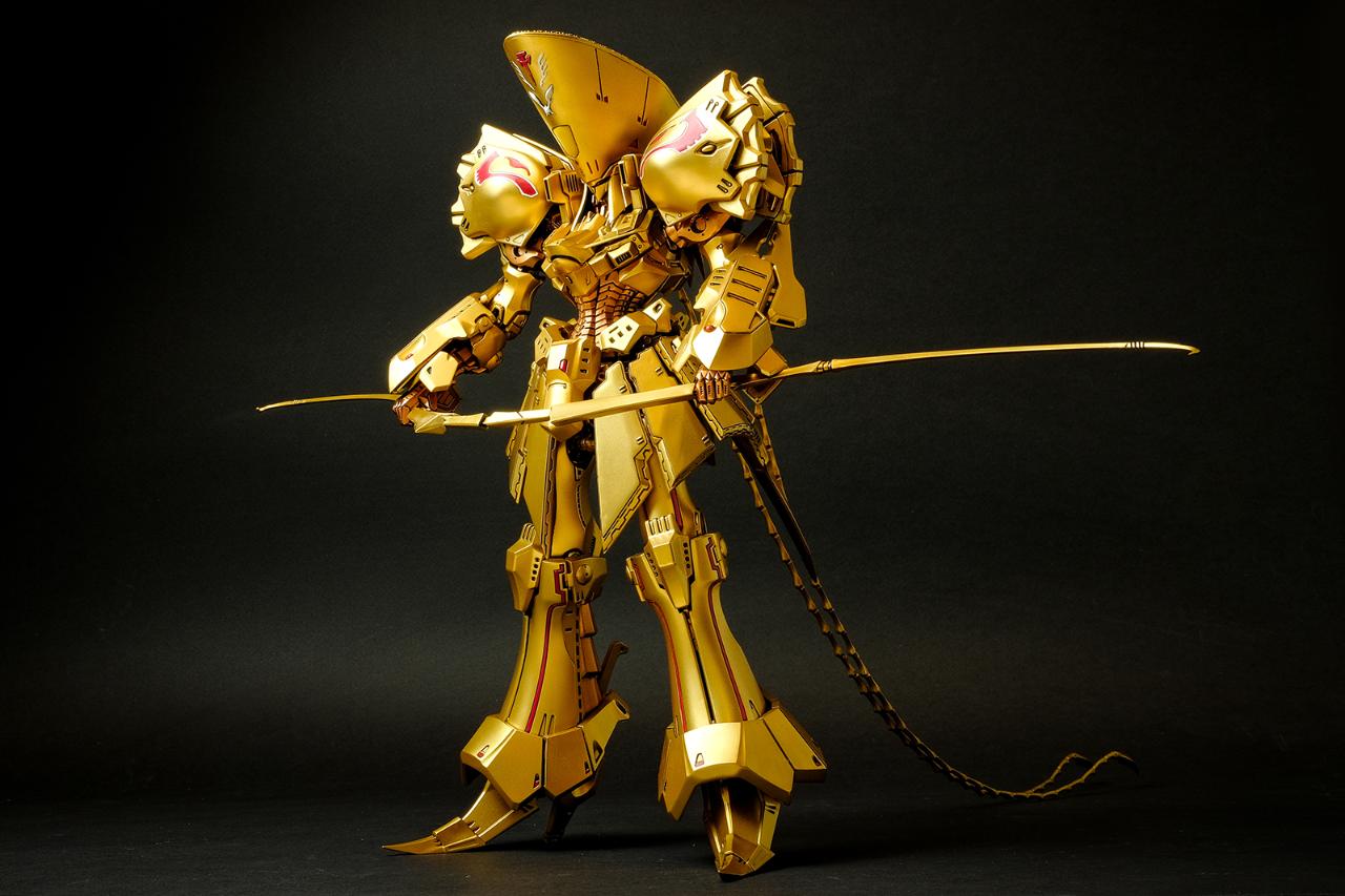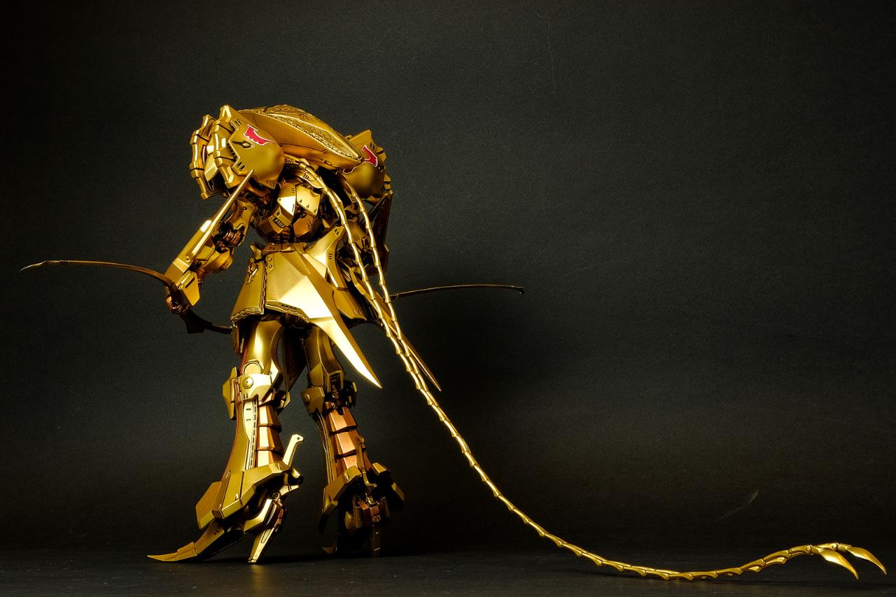 메카닉 키트에 관해서는 경험이 일천한지라 객관적인 평가가 될 순 없겠지만, 비정상적으로 큰 머리에 갑주가 주렁주렁 붙어 있는 육중한 형태이면서도 짜리몽땅한 느낌은 전혀 없고 늘씬하면서 주변을 압도하는 느낌이 무척 훌륭합니다. 특히 풍부한 볼륨을 보여주면서도 직선으로 딱 떨어지는 장갑류의 아웃라인은 시각적 감동이라는 표현이 아깝지 않습니다.