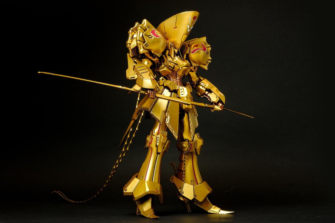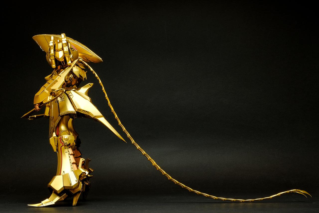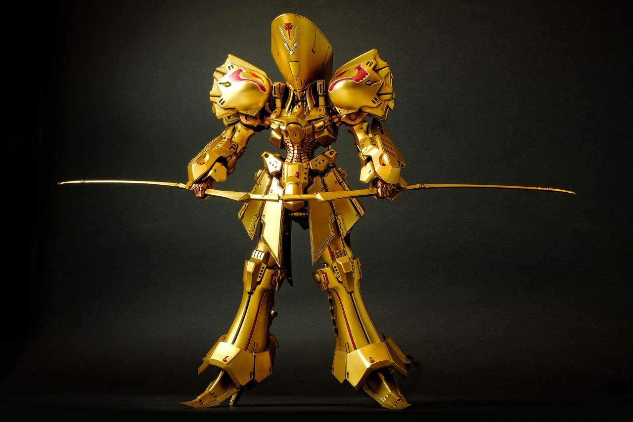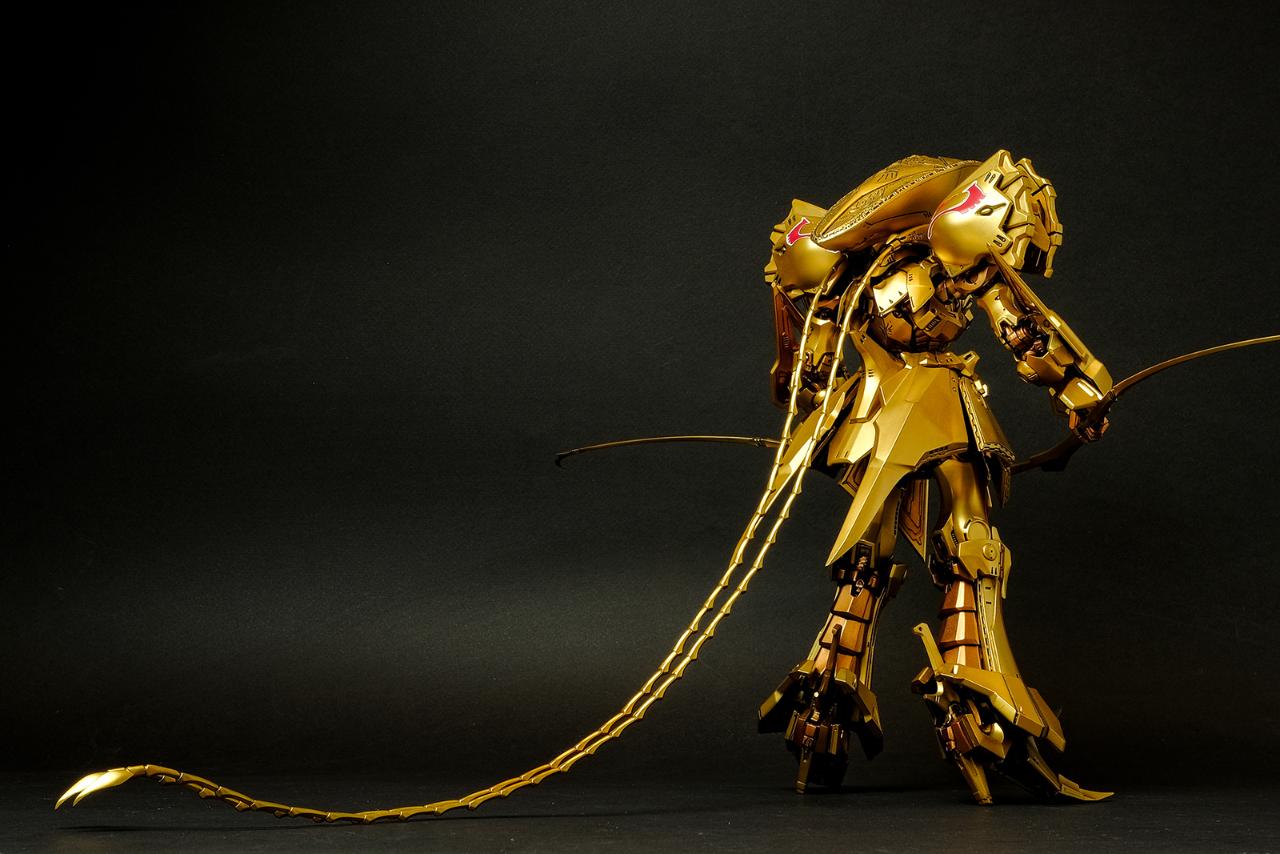 메카닉 키트에 관해서는 경험이 일천한지라 객관적인 평가가 될 순 없겠지만, 비정상적으로 큰 머리에 갑주가 주렁주렁 붙어 있는 육중한 형태이면서도 짜리몽땅한 느낌은 전혀 없고 늘씬하면서 주변을 압도하는 느낌이 무척 훌륭합니다. 특히 풍부한 볼륨을 보여주면서도 직선으로 딱 떨어지는 장갑류의 아웃라인은 시각적 감동이라는 표현이 아깝지 않습니다.