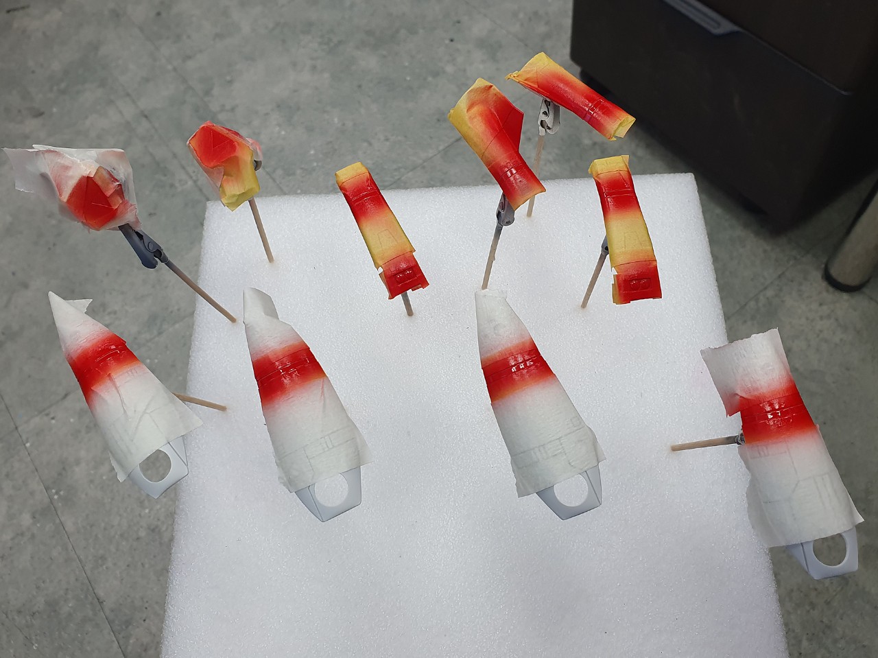 몰드 안쪽으로 집어넣어 붙이는 데칼의 경우는 주변의 투명한 여백을 다 잘라내고 붙여야 합니다.