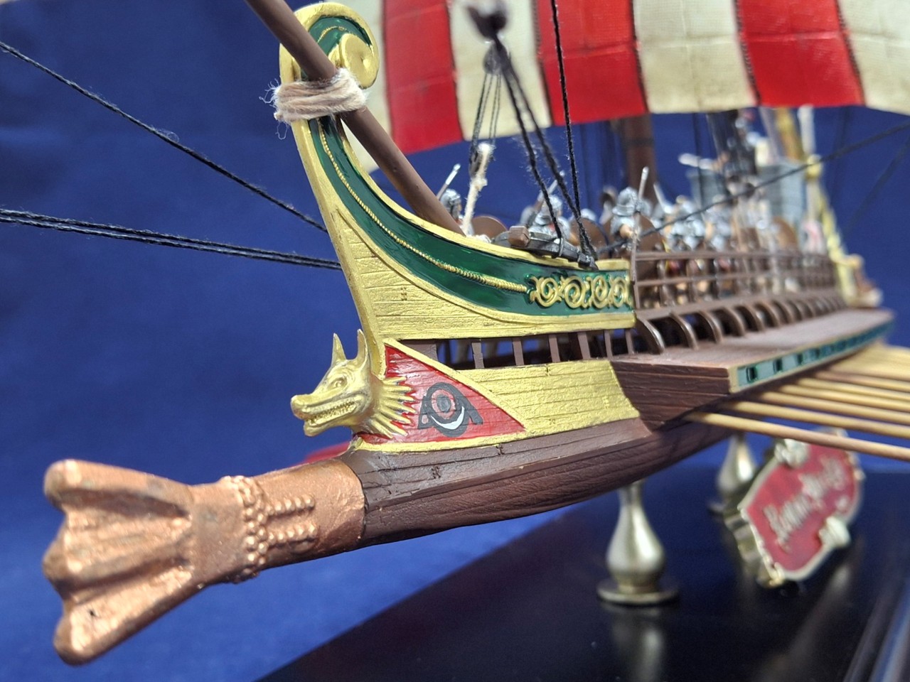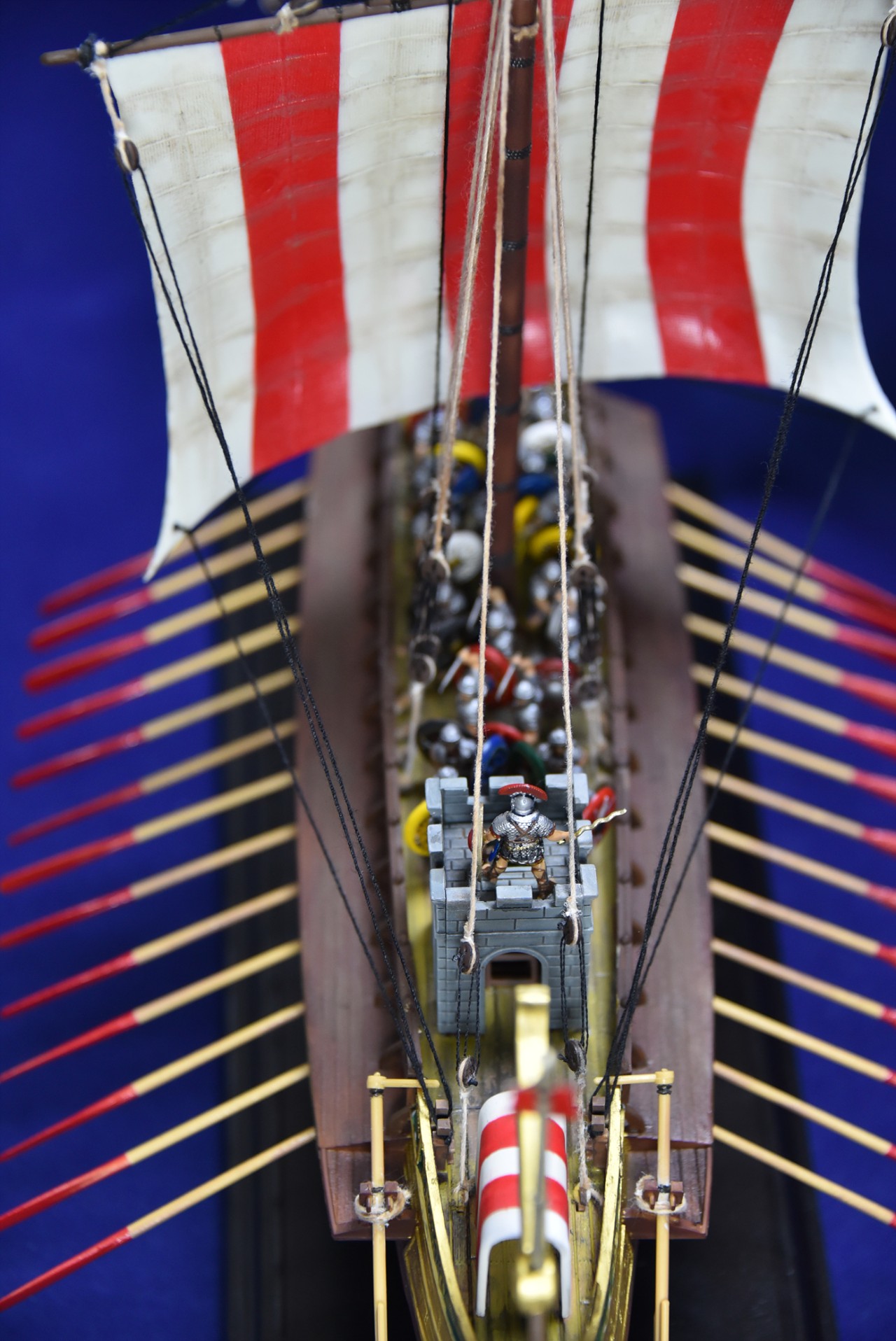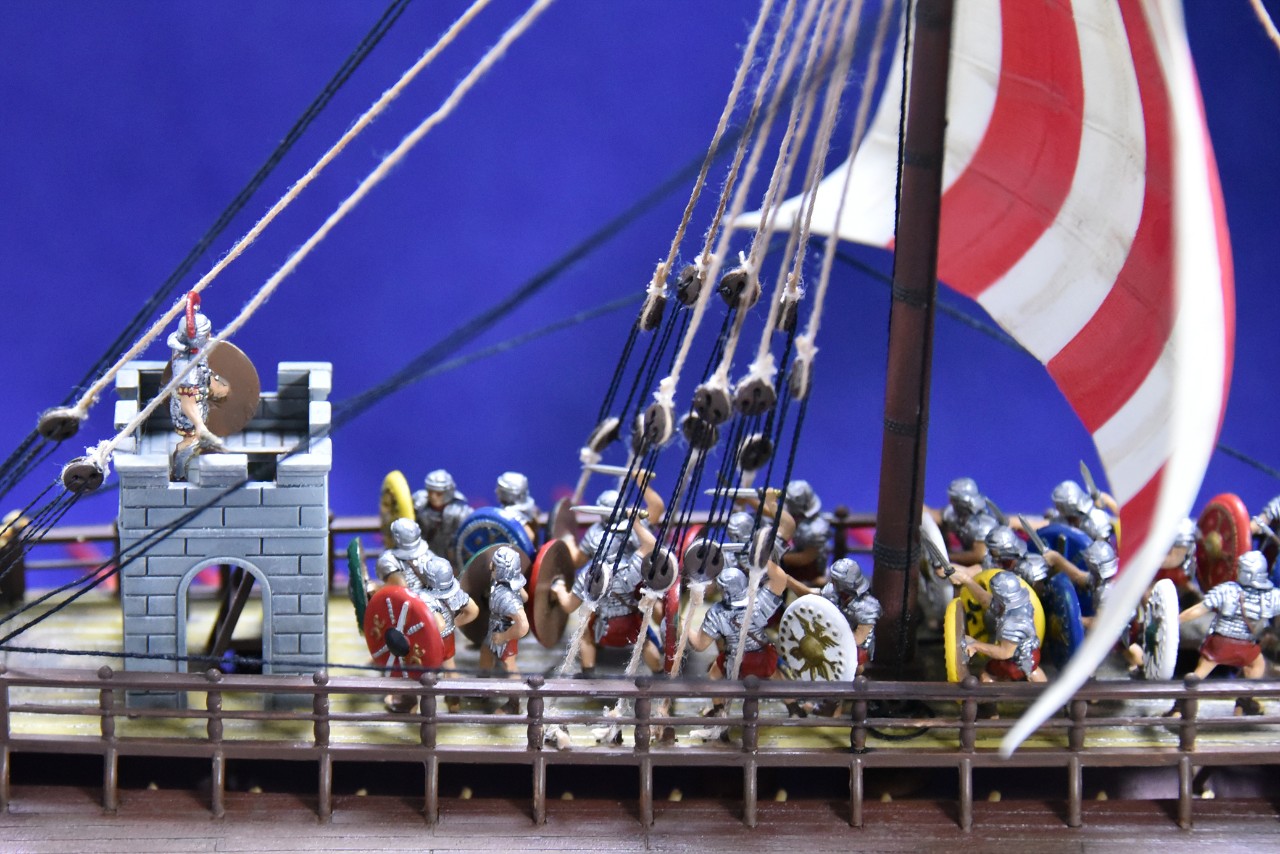 키트의 원형 방패는 배의 난간에 접착하게 돼 있는데, 전 이걸 떼어서 병사의 왼손에 쥐어줬습니다.