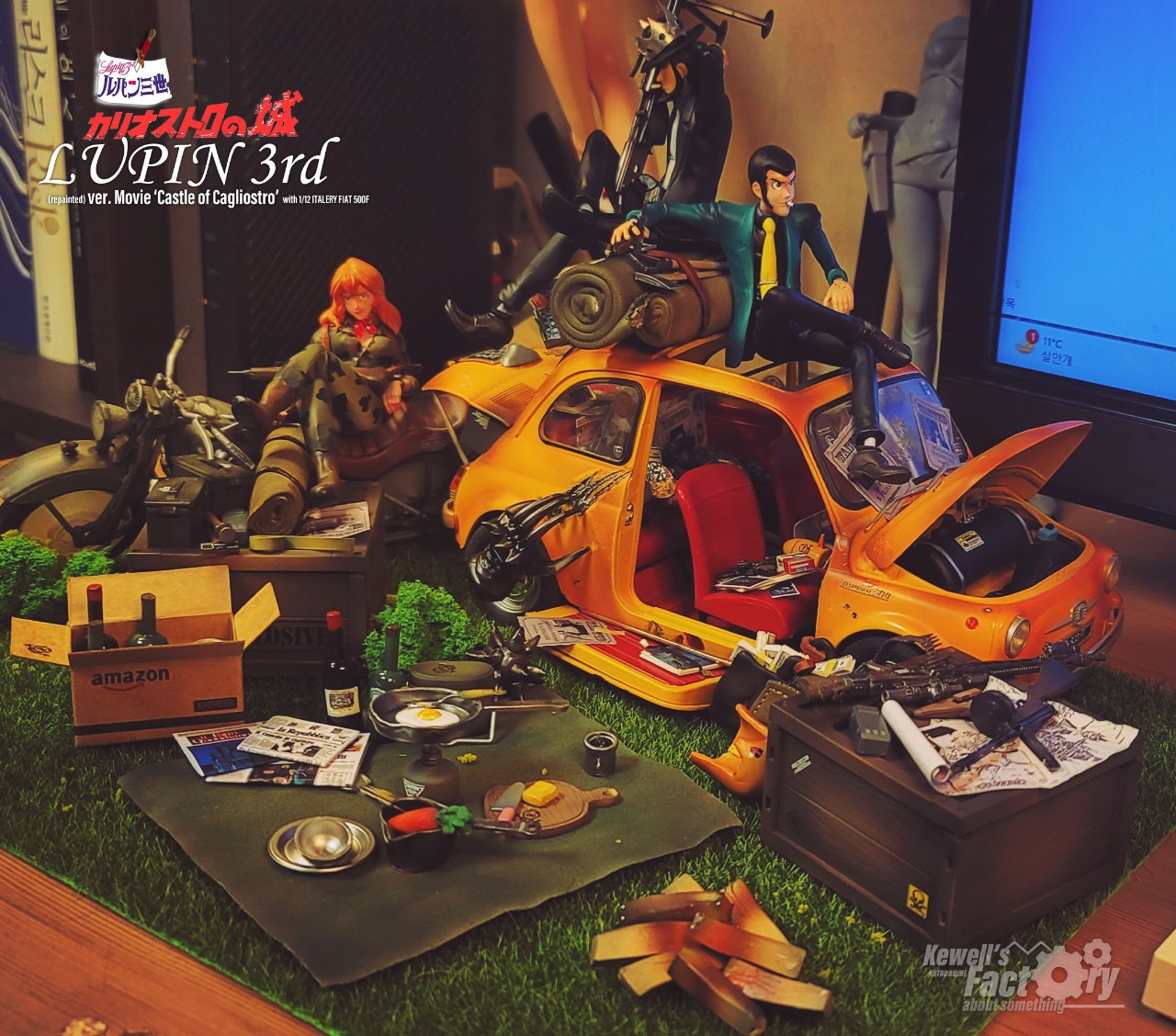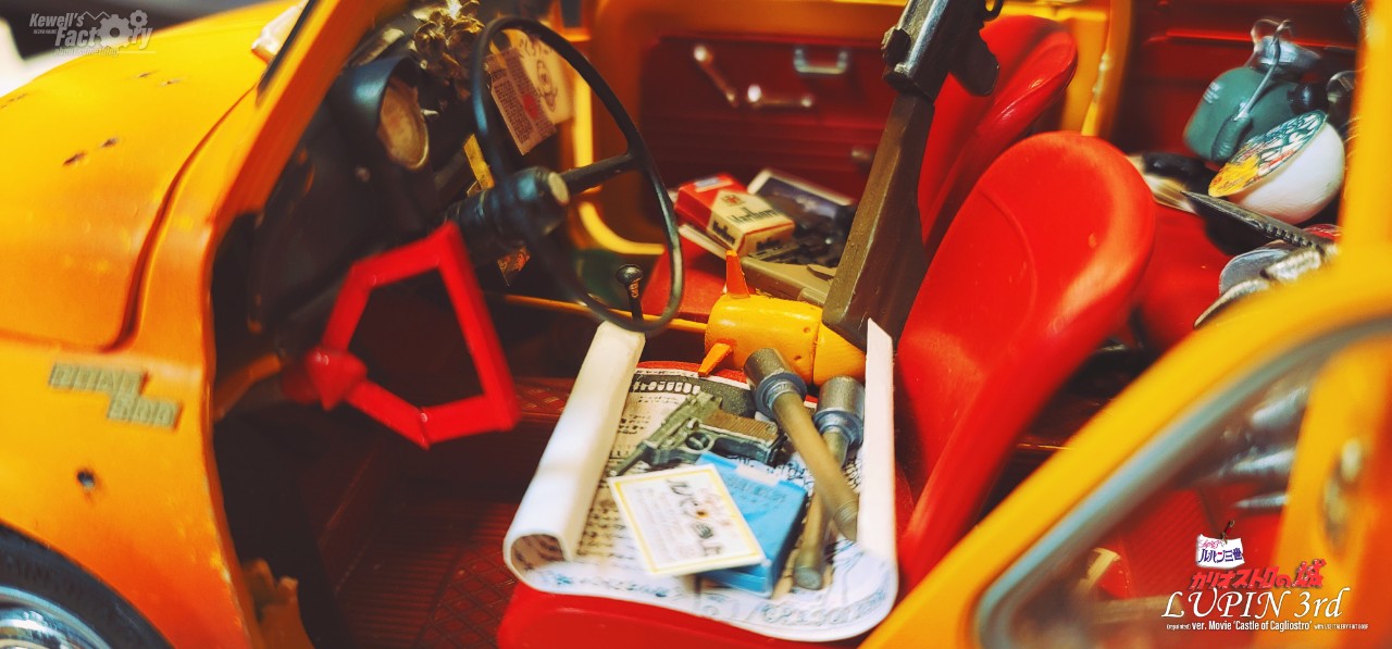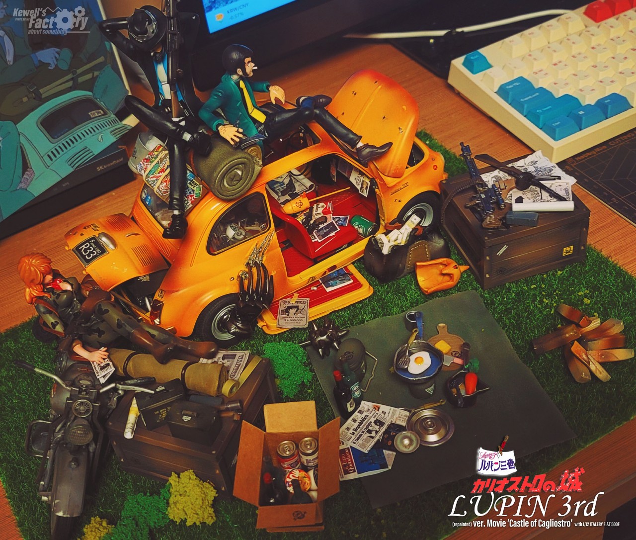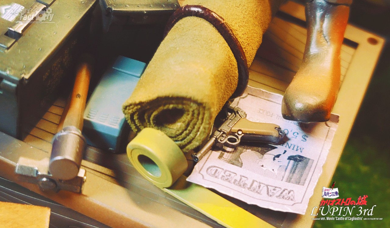 미야자키 하야오의 루팡3세 극장판 칼리오스트로의 성을 디오라마로 구현해 봤습니다. 베이스는 이탈레리 피아트 500F 1/12를 베이스로 하고, 루팡, 후지코, 지겐은 기존의 존재하고 있었던 피규어를 칼리오스트로성 버전에 맞게 개조 및 수정했으며 극중 등장한 많은 아이템들을 최대한 많이 직접 구현하려고 노력했습니다. 아쉽게도 고에몬이 없어서 좀 부족하긴 하지만 나름대로는 최대한 많은 로망템을 소환해보려고 시도했습니다.
