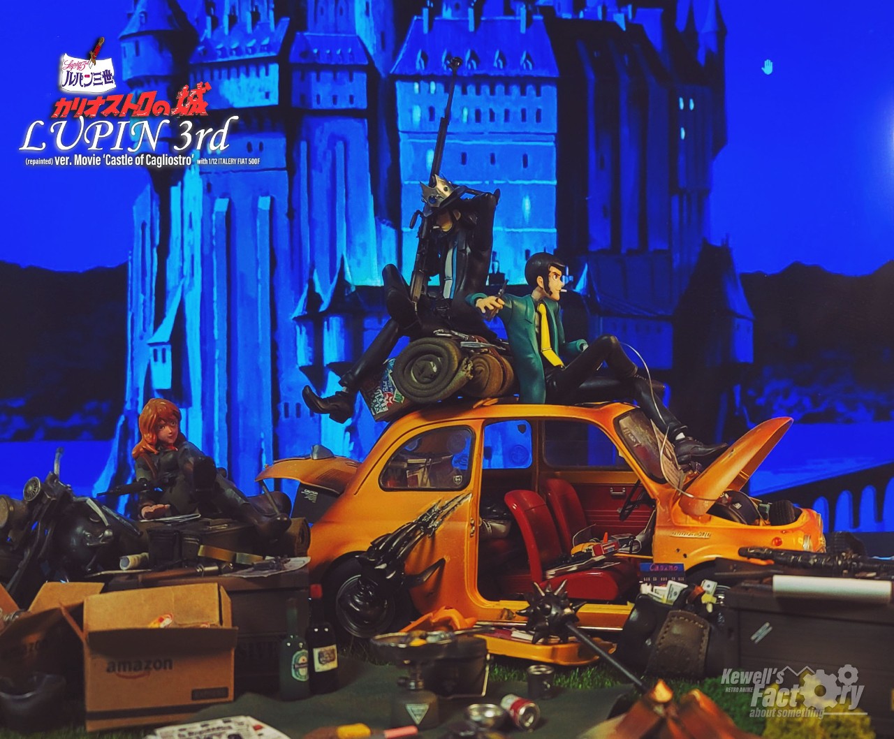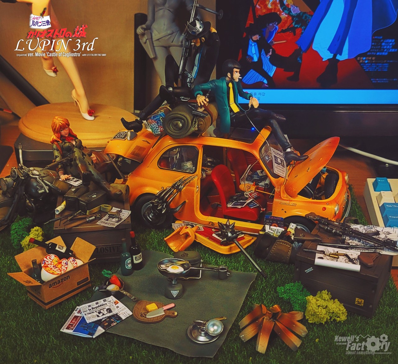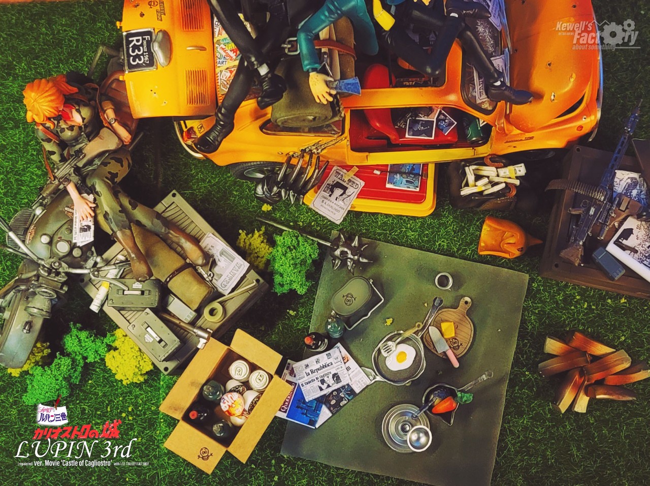 미야자키 하야오의 루팡3세 극장판 칼리오스트로의 성을 디오라마로 구현해 봤습니다. 베이스는 이탈레리 피아트 500F 1/12를 베이스로 하고, 루팡, 후지코, 지겐은 기존의 존재하고 있었던 피규어를 칼리오스트로성 버전에 맞게 개조 및 수정했으며 극중 등장한 많은 아이템들을 최대한 많이 직접 구현하려고 노력했습니다. 아쉽게도 고에몬이 없어서 좀 부족하긴 하지만 나름대로는 최대한 많은 로망템을 소환해보려고 시도했습니다.