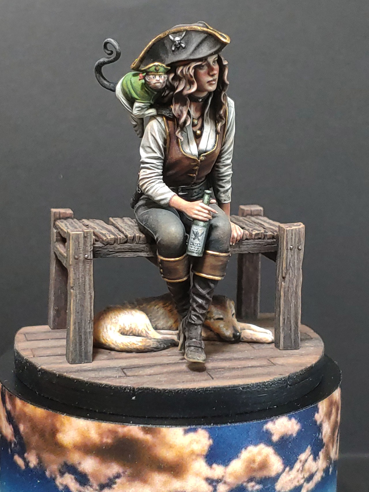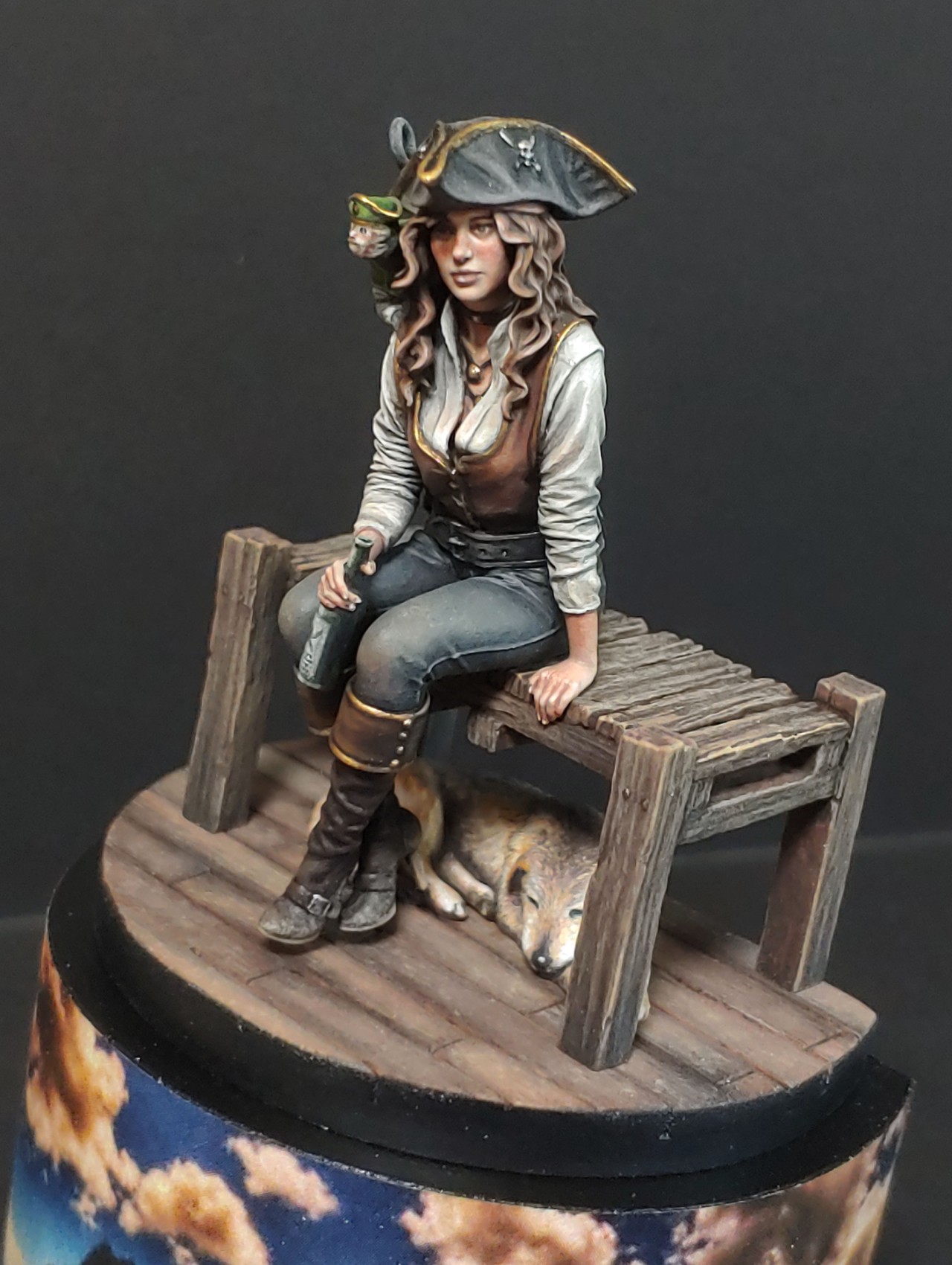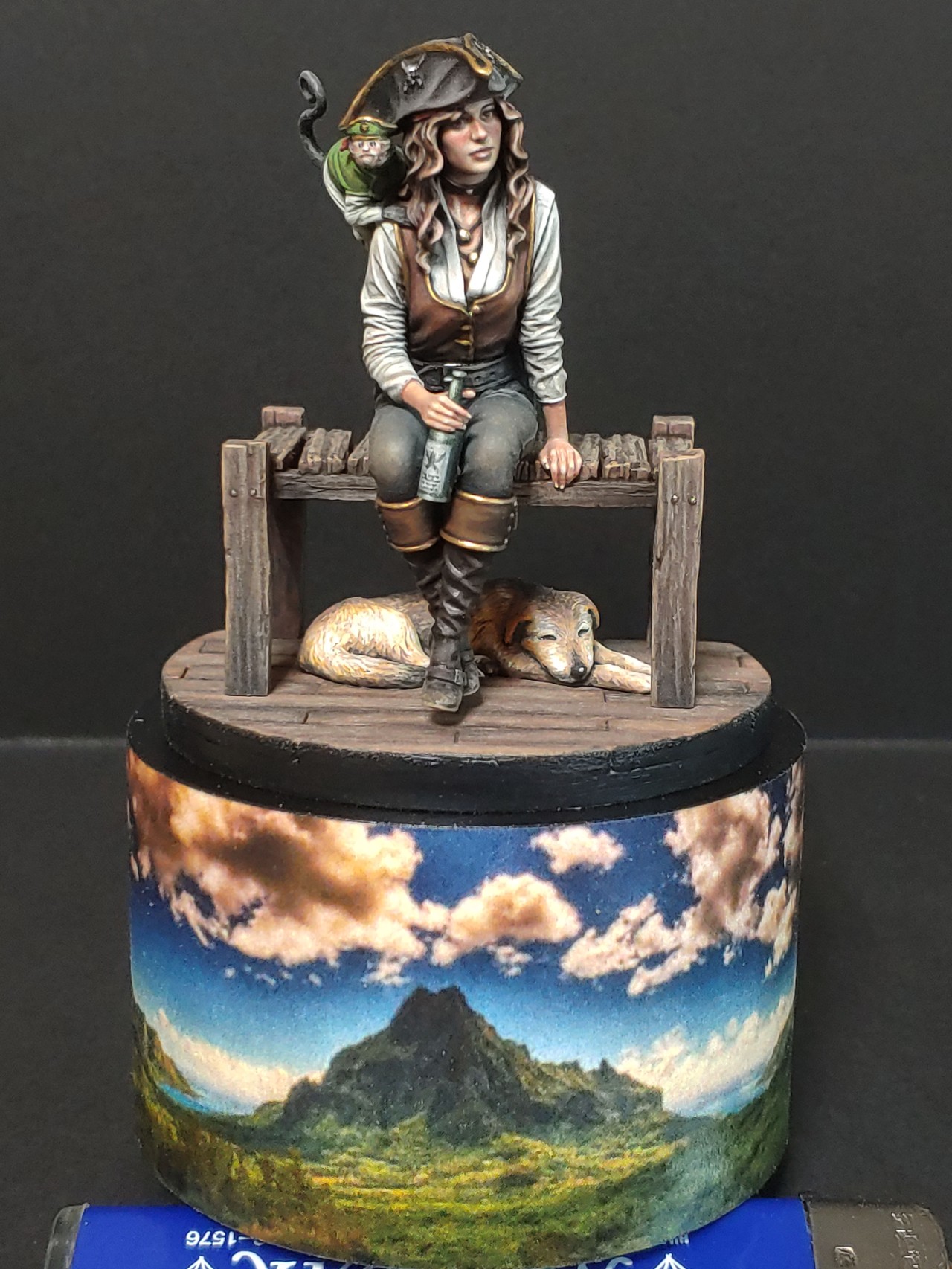 사람, 원숭이, 의자는 제품이고 바닥이랑 개는 자작입니다. 원래 바닥만 만들어 줬었는데, 다 칠하고 셋팅해보니 너무 허전해서 개 한마리 넣어 줬습니다. 베이스의 사진은 인터넷에서 적당한거 다운받아 붙였습니다.