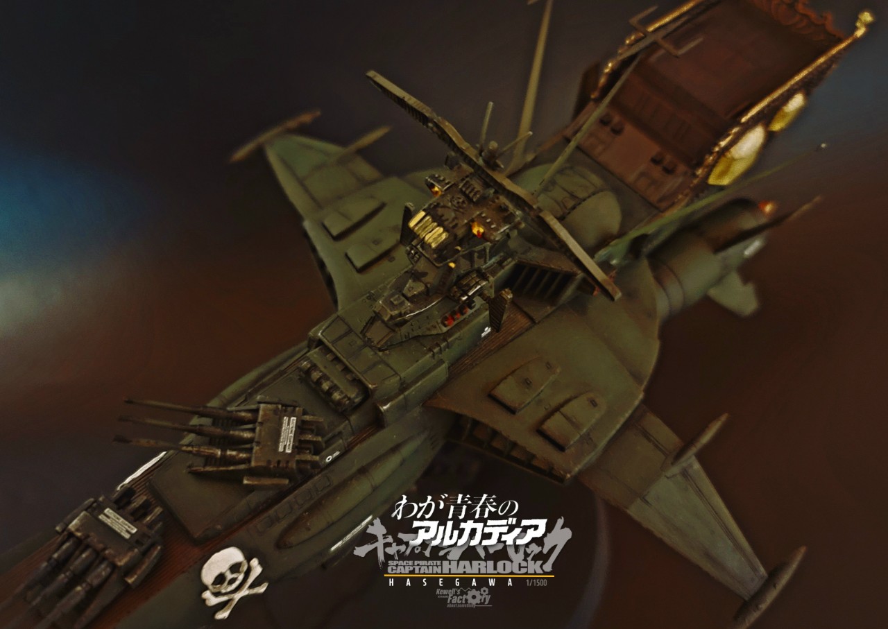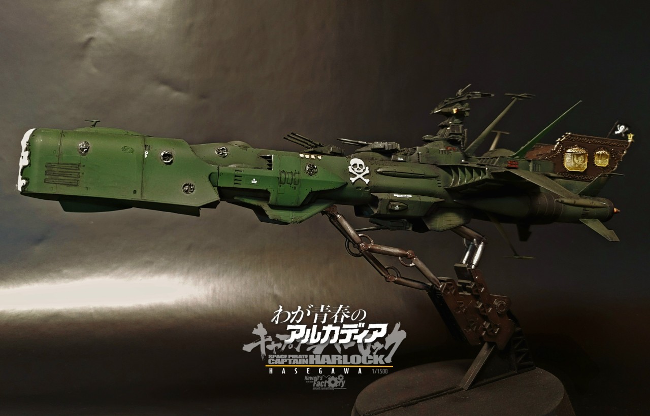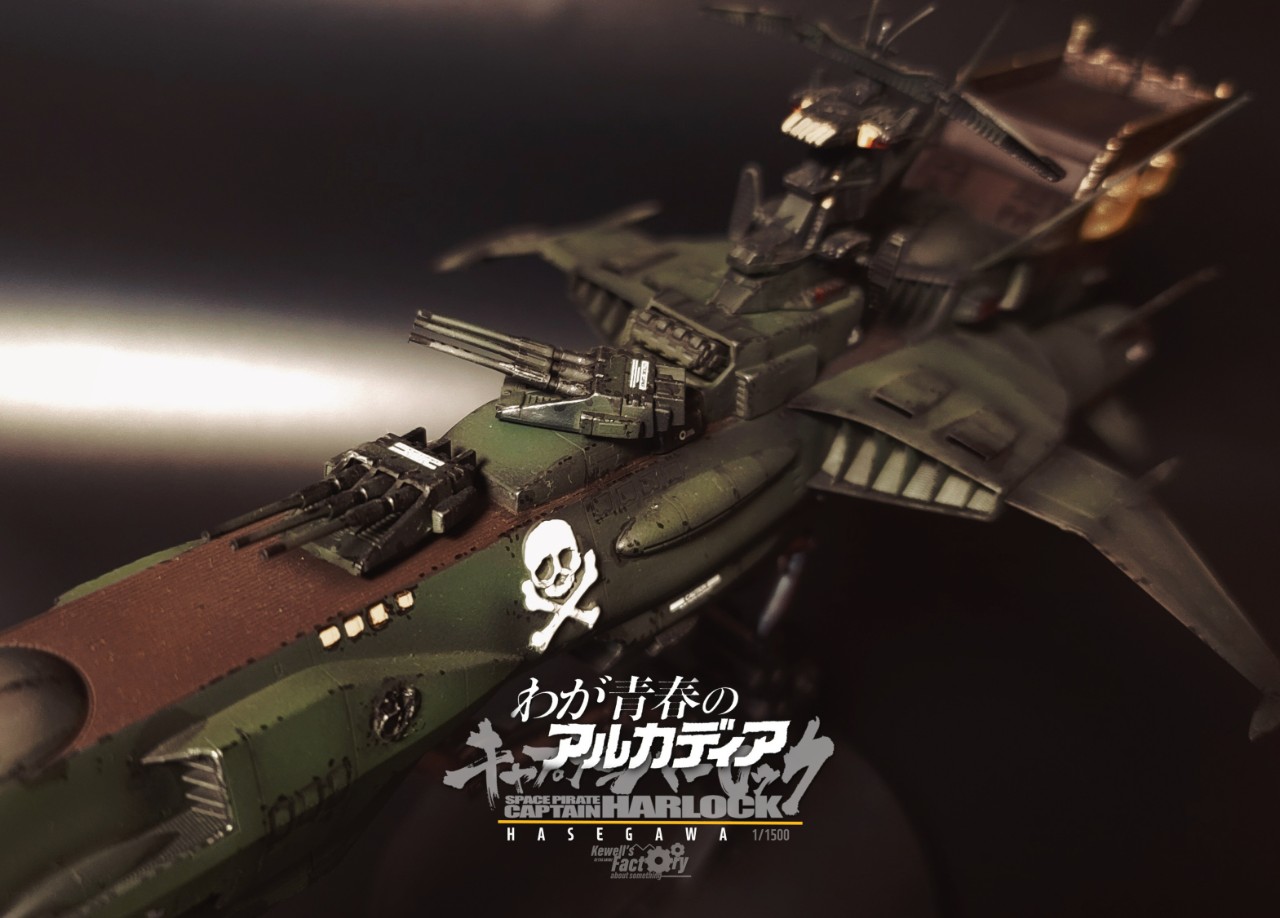 하세가와에서 출시한 1:1500 캡틴하록의 아르카디아호 퍼스트쉽입니다. 하세가와가 시리즈로 굉장히 다양한 아르카디아를 출시해줬는데 (약 7종 이상이 있는 것으로 알고 있음)그 중에서는 차원항해판 버전으로 1:1500 스케일에 맞춰서 출시된 버전이고, 같은 기종의 '강공형'도 출시되어진바 있었죠. 이외에도 TV판 전함이었던 푸른색 전함 세컨쉽등도 출시가 되어져 있습니다.