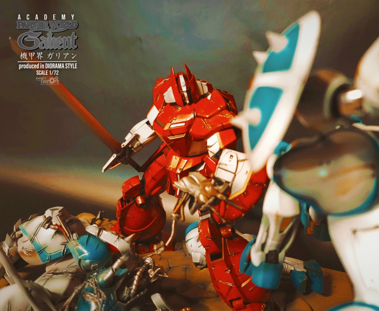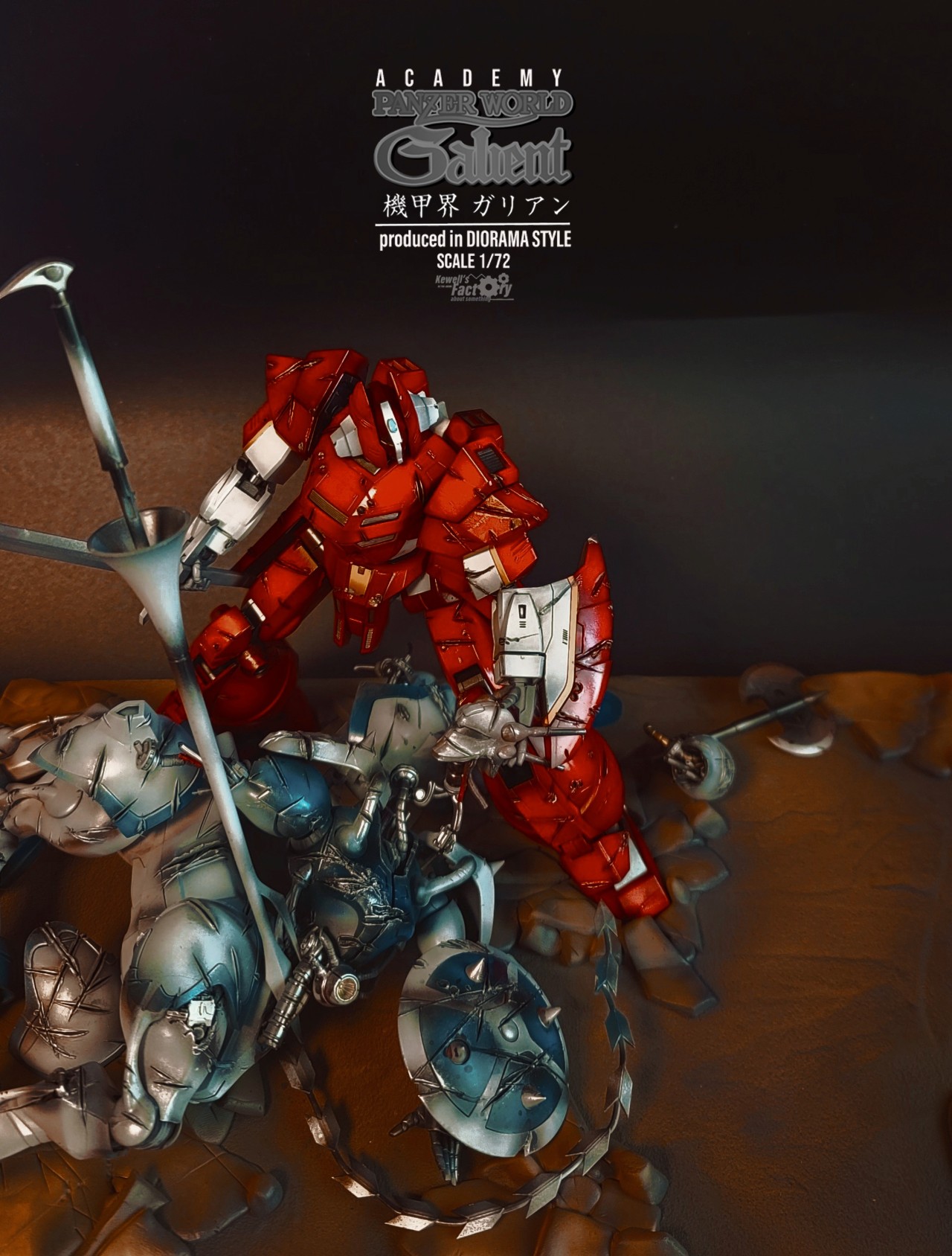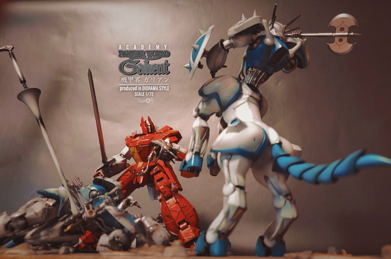 아카데미 가리안을 가지고 팬저월드의 검격씬을 재현해봤습니다. 사실 가리안의 경우, 그냥 디폴트 싱글 메카닉으로 세워두기에는 굉장히 심심한 메카닉이 되기 십상이어서 이럴바에는 가리안의 정체성을 살려서 프로마시스와의 검격전 테마로 아예 구현해보기로 했습니다.