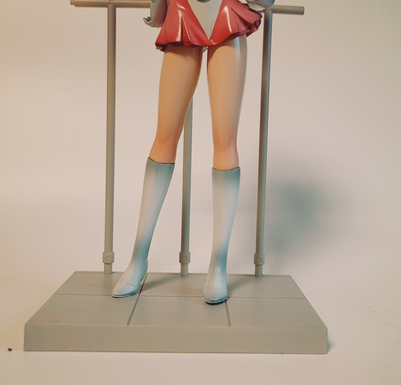 완제품 피규어와 비교하면 크게 프로포션상 다른 부분이 없습니다. 구조는 같지만 도색 과정에서 컬러를 좀 다르게 작업했습니다. 코스튬의 핑크톤을 싱글톤이 아닌 채도 명암을 줘서 그라데이션처럼 보이도록 도색처리했고, 장갑과 부츠 컬러 역시 더 밝은 화이트 톤으로 (완제품 피규어는 그레이톤) 작업했습니다. 결정적으로 눈을 직접 처리하다보니 시선이 머무는 곳등이 다르게 되었습니다. 별개로 머리띠 컬러도 다릅니다. (제 작업본은 노란색) 아무튼 스타일은 약간 다르게 작업되어졌습니다. (저만의 버전이라고나 할까요..)