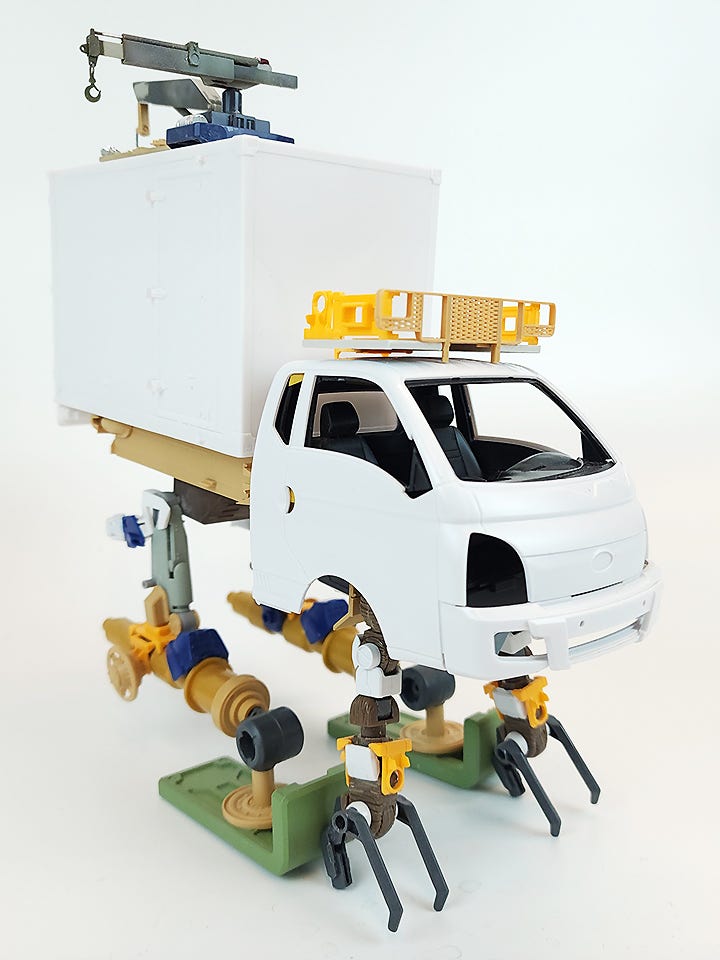 창틀과 헤드램프를 이색적으로 골드로 해줬는데요, 그냥 갑자기 그렇게 해주고 싶더라구요. 자동차였으면 쌈마이 스러웠겠지만, 캐릭터의 느낌을 가진 중장비로 세팅했더니 나름 괜찮아 보이는... 왜지?