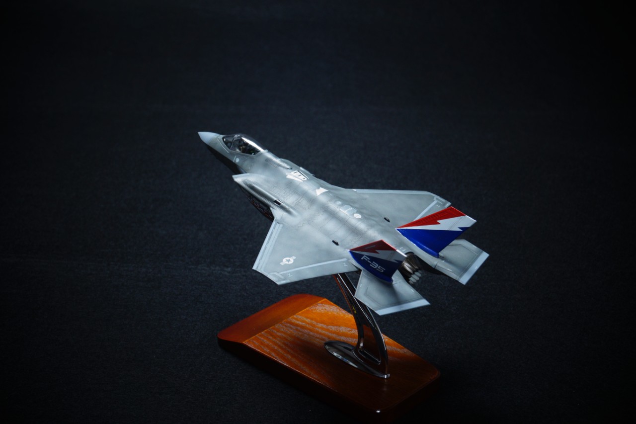 아카데미에서 나온 유사 신제품 F-35A 라이트닝 전투기입니다. 비행 상태와 스텔스 모드로 제작을 하였고 덕분에 작업시간이 많이 단축이 되었습니다. 착륙 상태 및 무장 작업이 이루어 졌다면 아마도 2주 정도는 더 시간이 걸렸을듯합니다. 베이스는 포함이 안 되어 있어 별매 베이스를 사용하였습니다.