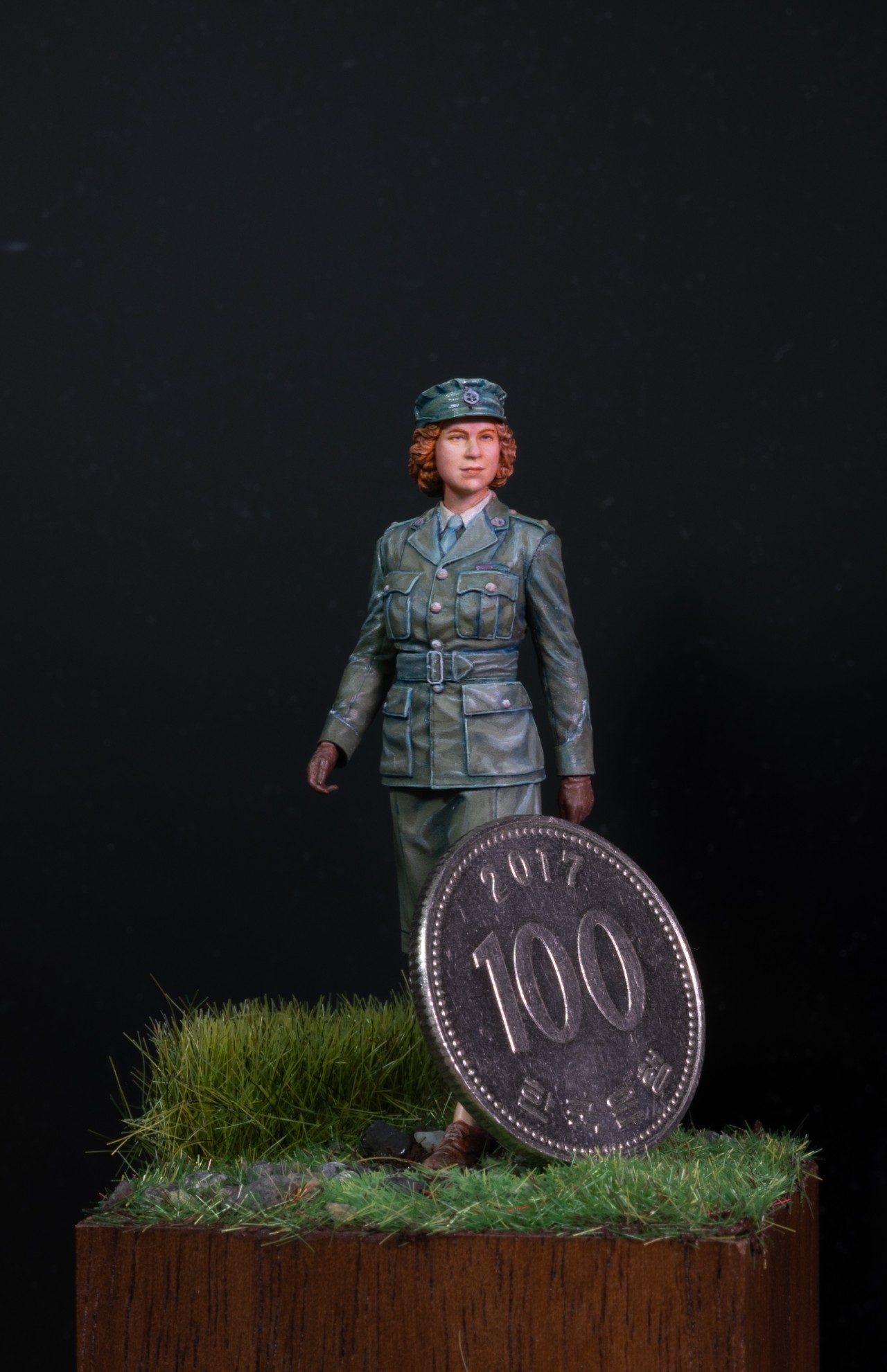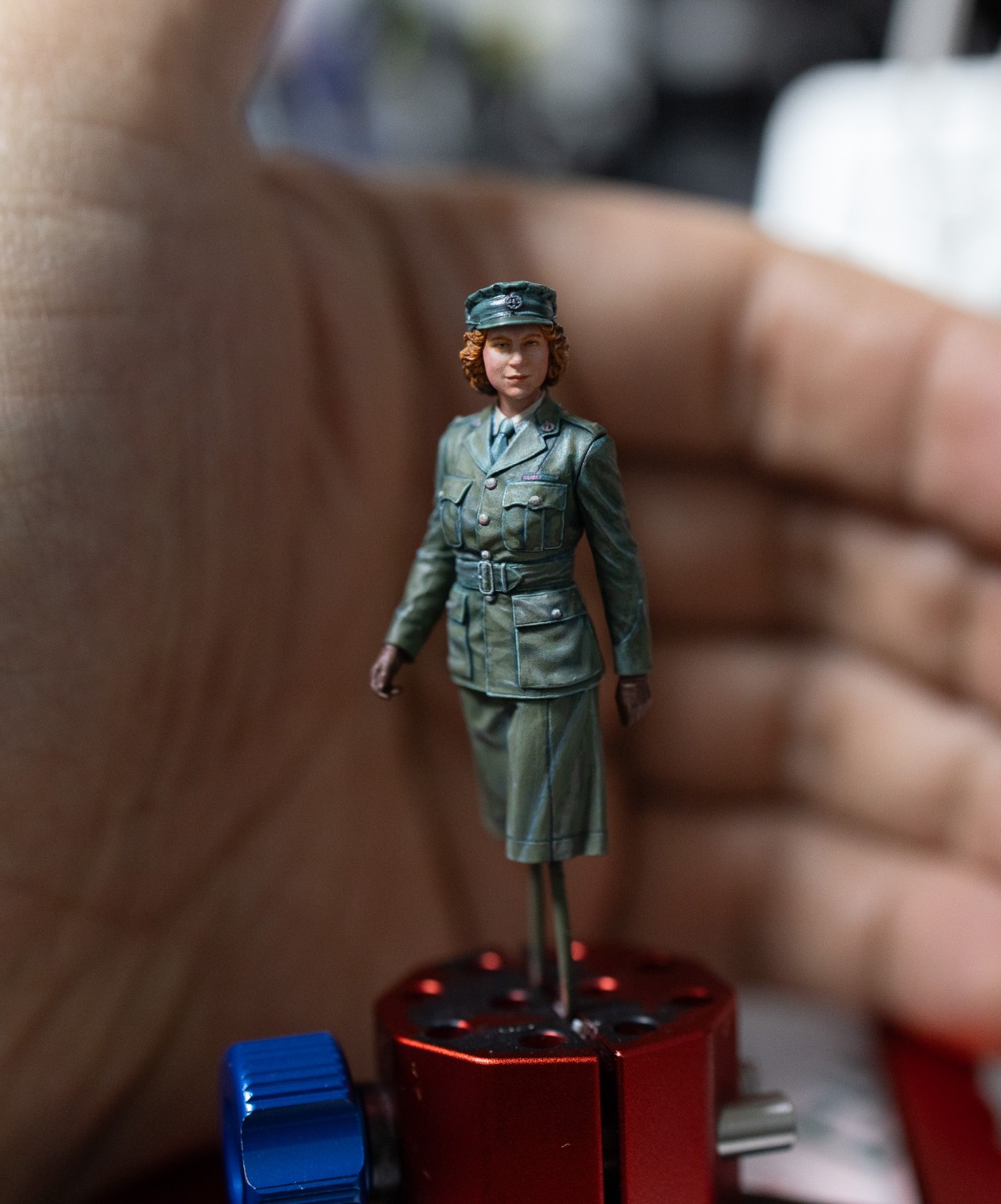 라이프미니어쳐의 엘리자베스 공주2세 입니다. 1945년 2차대전 당시 군복무 중이던 엘리자베스2세를 모델로 한 작품입니다. 군복색이 실제 영국군의 군복색은 아니지만 개인적으로 이 색상이 더 어울릴것 같아 저만의 세계의 인물로 도색했습니다. 조형은 1/35 scale 입니다.