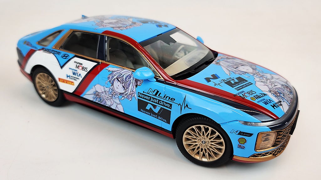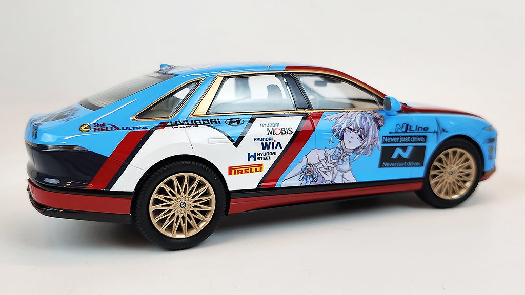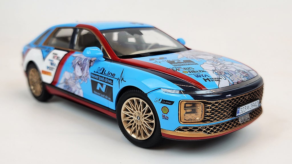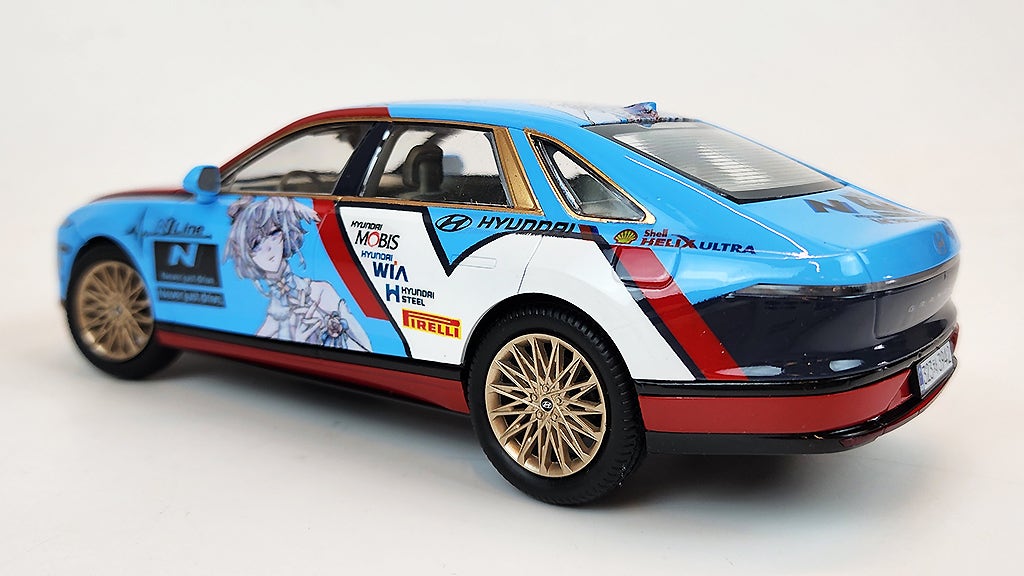 아반떼 N 머신의 패턴을 많이 참고해서 그랜저 N 머신이 생긴다면 이렇겠지 라는 생각으로 제작해봤네요. 창틀과 라디에이터그릴, 휠을 골드로 칠해서 과장해봤는데, 이것도 나름 잘 어울리더라구요^^
