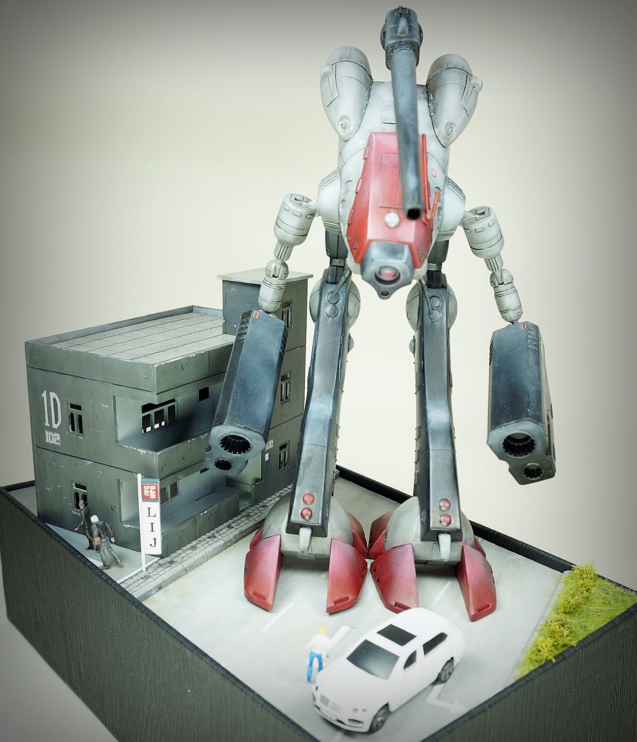 베이스는 마크로스 함내에 그라지가 침투해서 시민들이 놀라는 설정으로 만들었고 건물은 알리에서 구입한 제품을 개조했고, 자동차와 피규어는 건축모형용을 대충 손봐서 사용했습니다. 용도가 그렇다보니 디테일이 많이 떨어지는데 그냥 구색이라고 생각하고 많이 공을 들이지는 못했습니다.