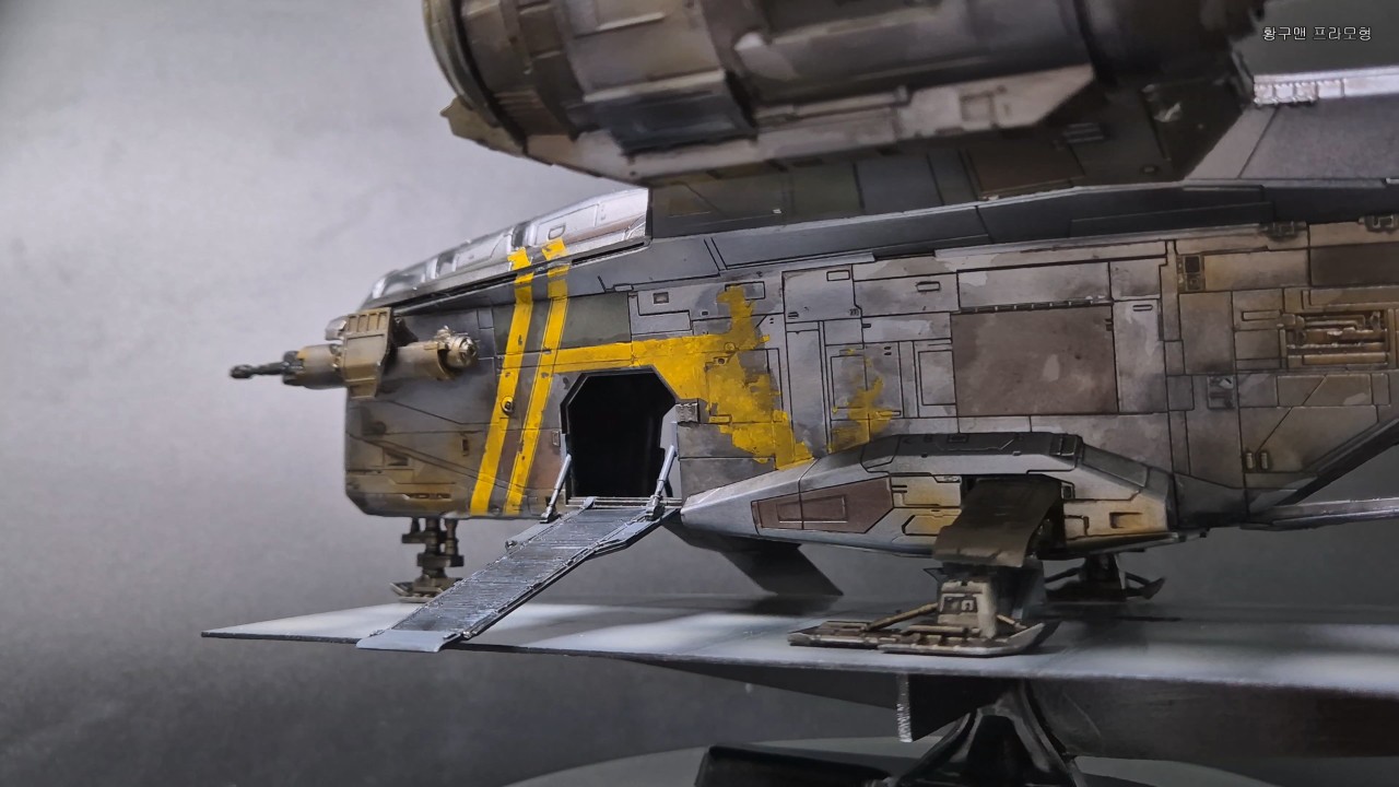 한국에 아주 소량 수입되었던 레벨 사의 1/72 레이저 크레스트입니다. 스타워즈 만달로리안 드라마에서 주인공인 딘 자린이 타고 다니던 건쉽입니다. 저는 미국에서 직구했습니다.