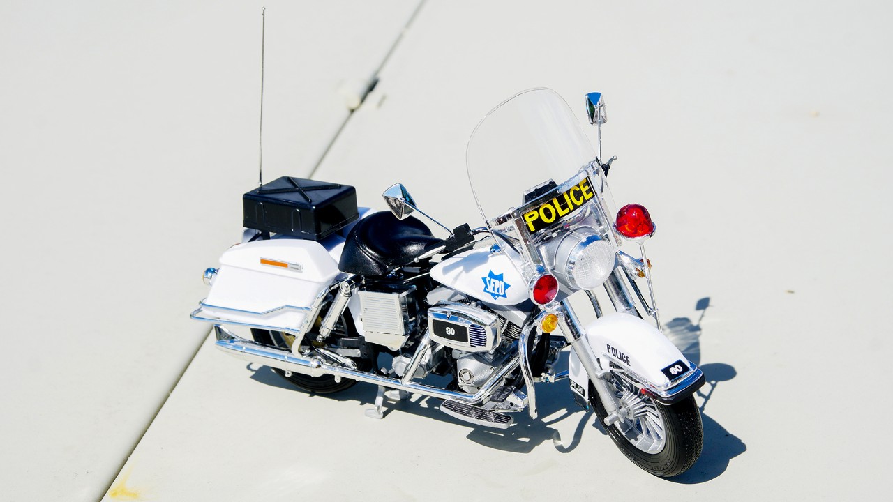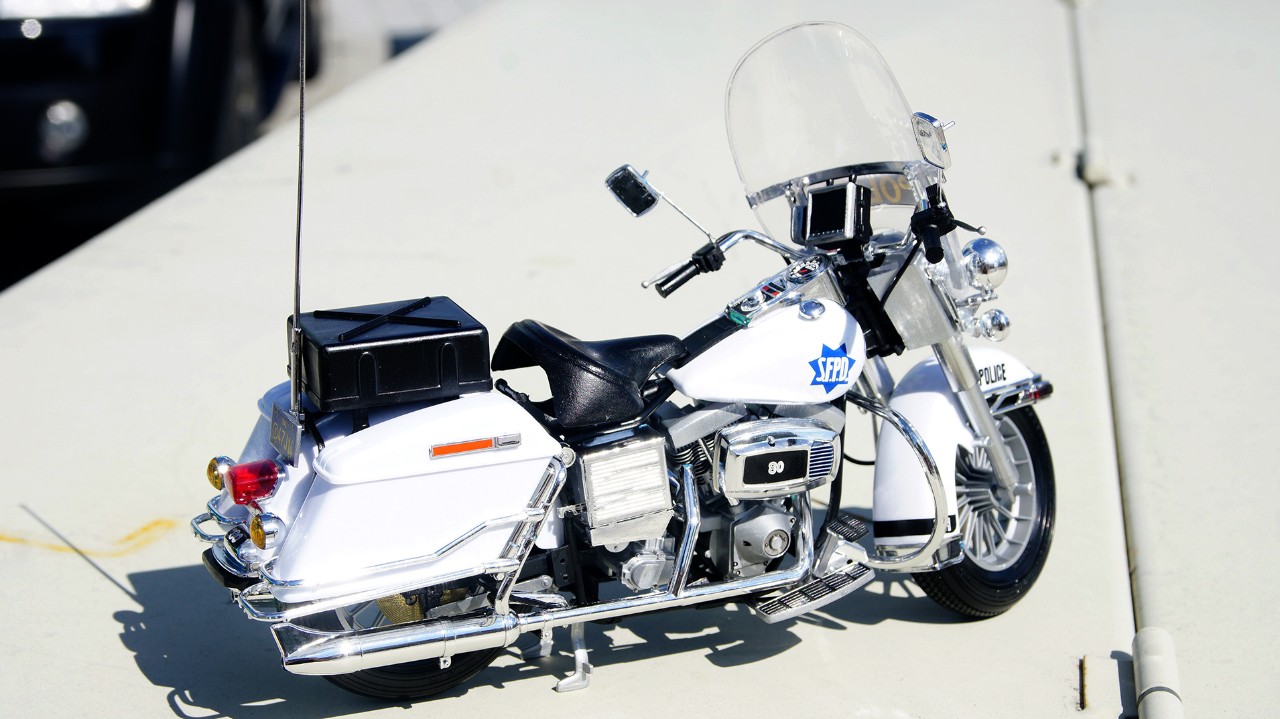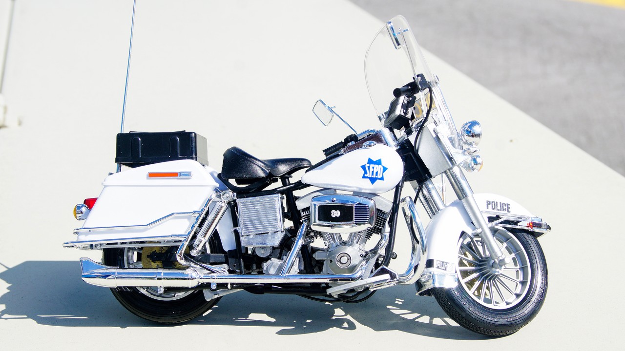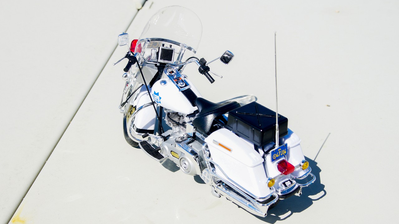 원래 데칼은 친한 형님께 맡겨서 뉴욕 경찰로 할까 하다가 샌프란시스코 경찰도 나쁘지 않아서 그대로 썼습니다. 찾아보니 S.F.P.D가 사실은 S.F.P.D. 이여야 하고 테두리 장식도 약간 다른점이 있긴 하던데 그냥 넘어가고... 가장 아쉬운건 앞바퀴 커버의 뒤 맥기 부분에 FLH 데칼 띠가 둘러져야 하는데 제가 실수로 커버 자체에 붙히고 그대로 마감제 뿌리고 사포질하고 광내고... 이게 정말 아쉽습니다.