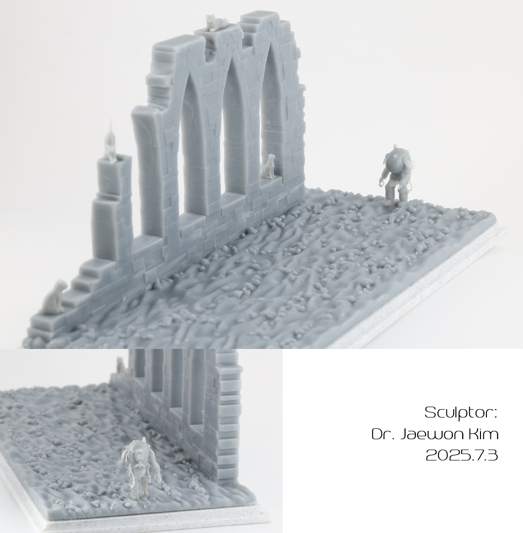 이번엔 디오라마 형식으로 베이스에 성벽까지 넣었습니다. 블렌더에서 몇분이면 제작이 가능합니다. 베이스만 FDM 프린터로 출력했고 나머지는 DLP 프린터로 출력했습니다.