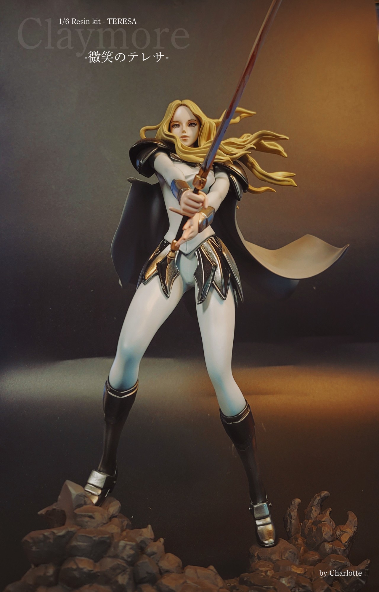 시중에 클레어는 좀 봤어도 테레사는 별로 없기도 하지만, 사실 극중 최강자 캐릭터이기도 해서 인지도와 비중이 남다르긴 했죠. 1/6 스케일이어서 전고가 30센티가 넘어가는게 묵직한 존재감을 발휘해줍니다. 아무튼 작업의 주안점은 눈을 원작 오리지널 애니메이션 분위기가 나도록 만들어주는게 제일 중요했고, 그에 못지않게 전반적인 컬러톤을 결정하는데 고심을 좀 했습니다. 아래는 완성사진들입니다.