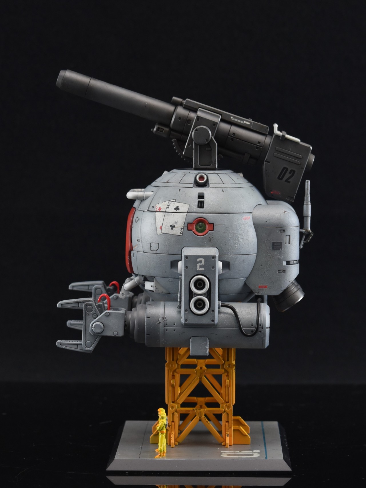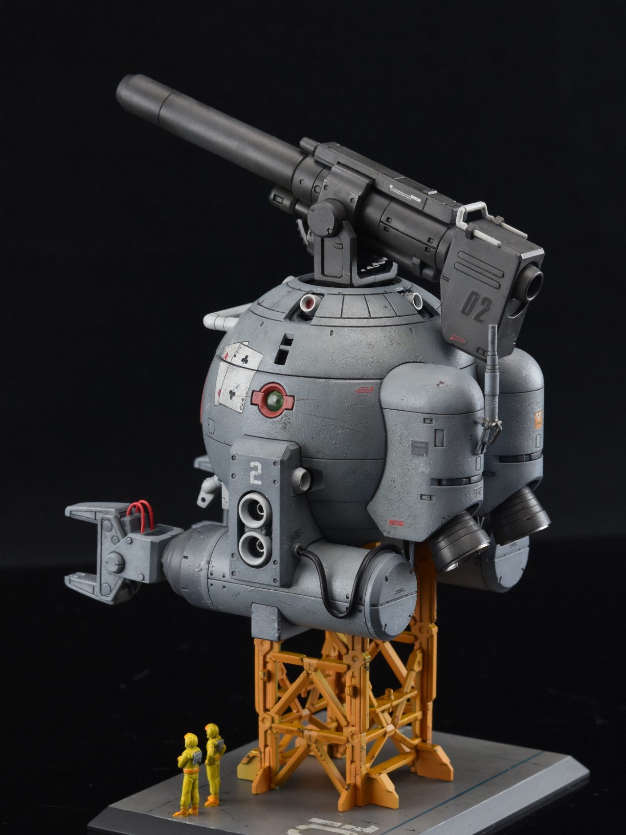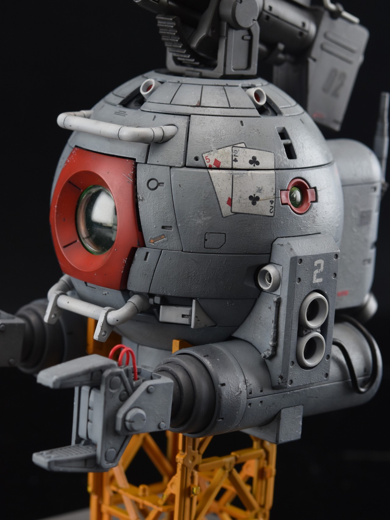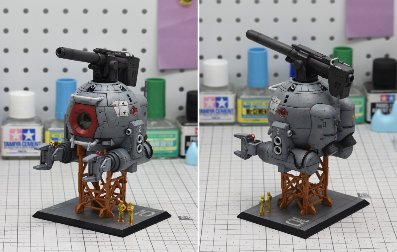 우주전장에서 볼은 피격을 받는다면 스쳐도 대파라고 생각해서 본체에는 파편에의한 손상정도만 가정해두고 표현을 해줬습니다. 흑채를 뿌려놓은 것 같은 무지성 치핑이 되지않기를 주의하며 제작했지만 결과를 보니 부족한 것 같기도 하네요.