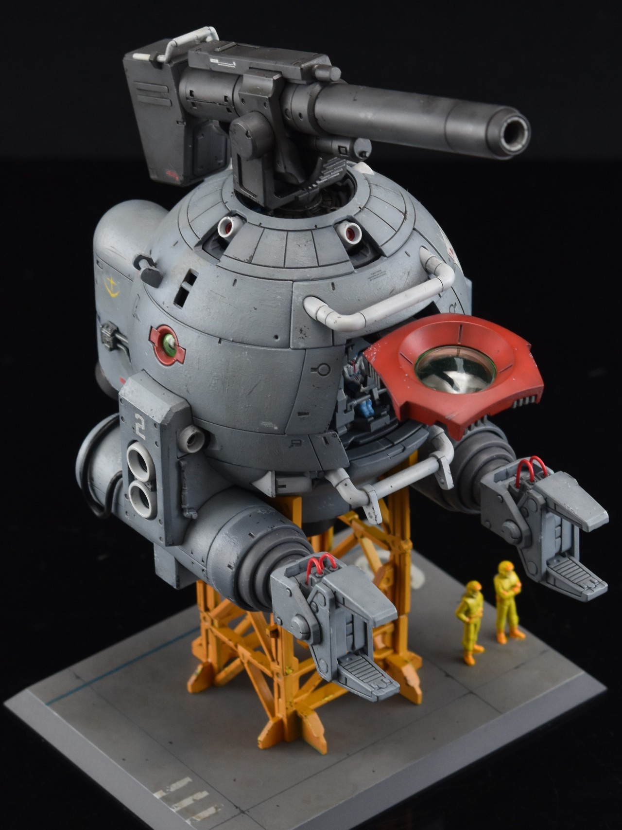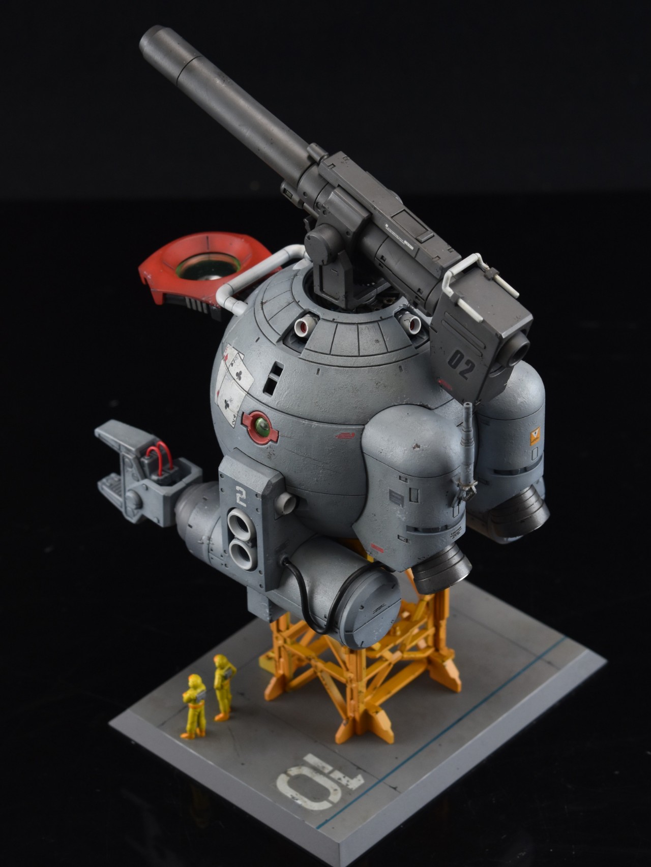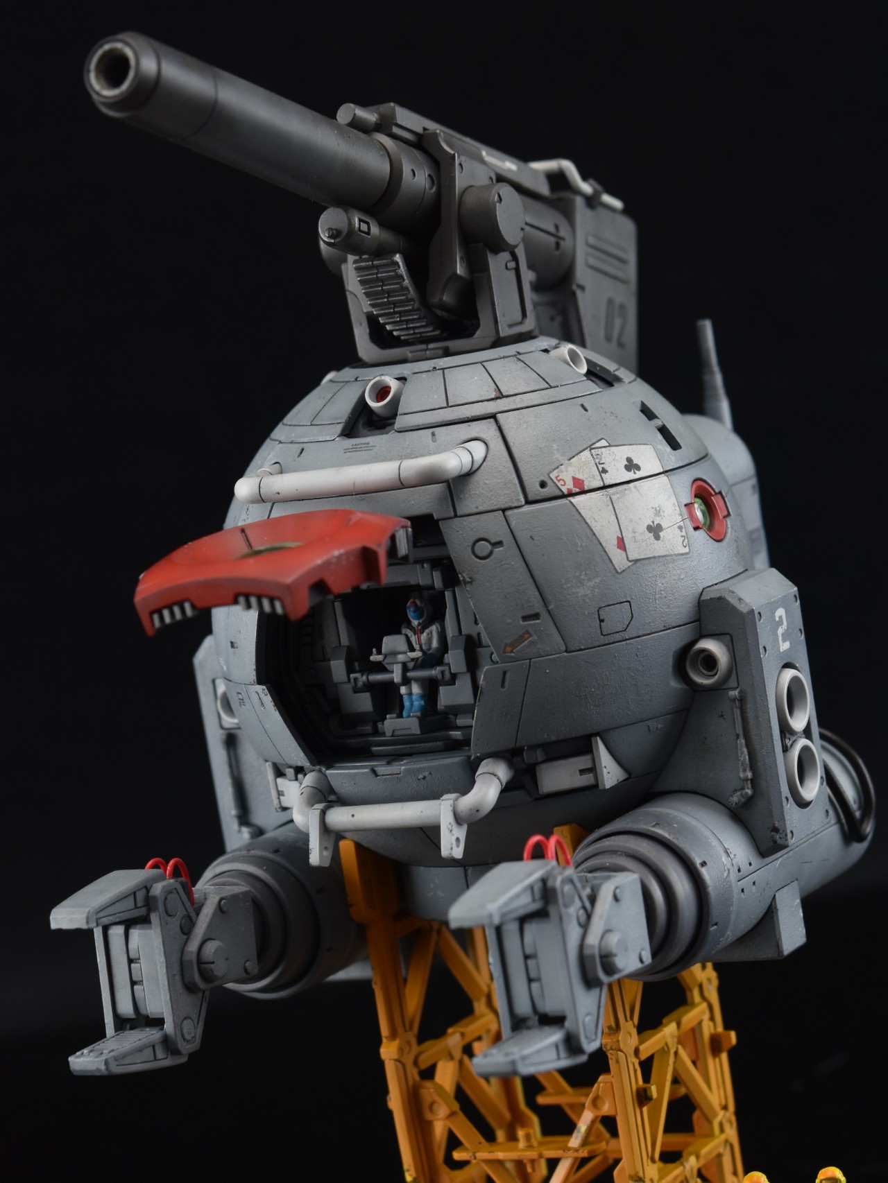 우주전장에서 볼은 피격을 받는다면 스쳐도 대파라고 생각해서 본체에는 파편에의한 손상정도만 가정해두고 표현을 해줬습니다. 흑채를 뿌려놓은 것 같은 무지성 치핑이 되지않기를 주의하며 제작했지만 결과를 보니 부족한 것 같기도 하네요.