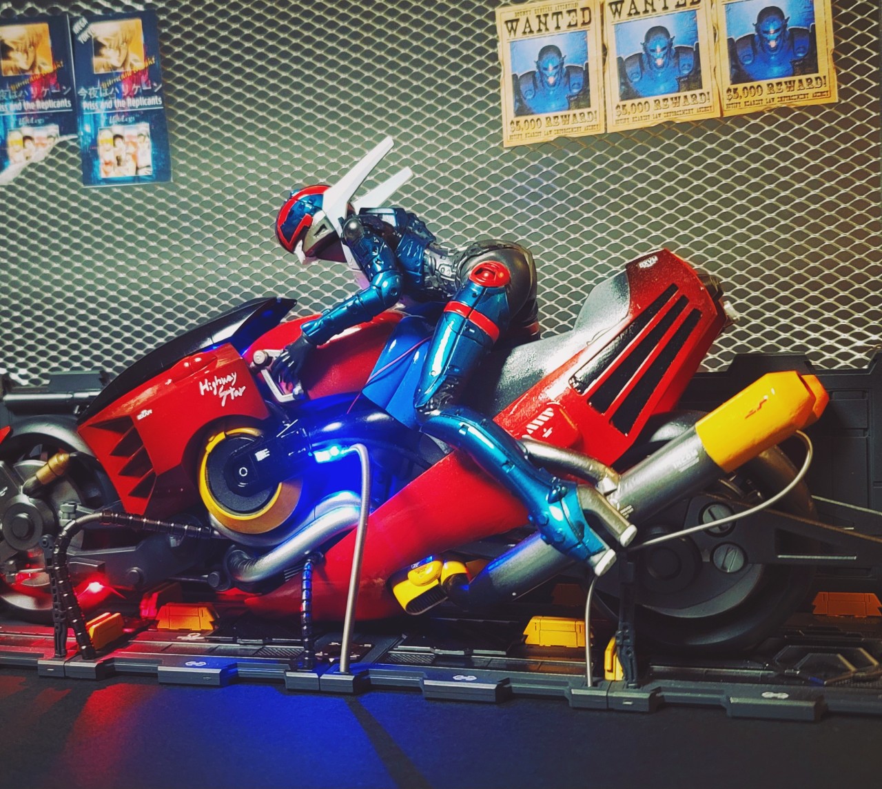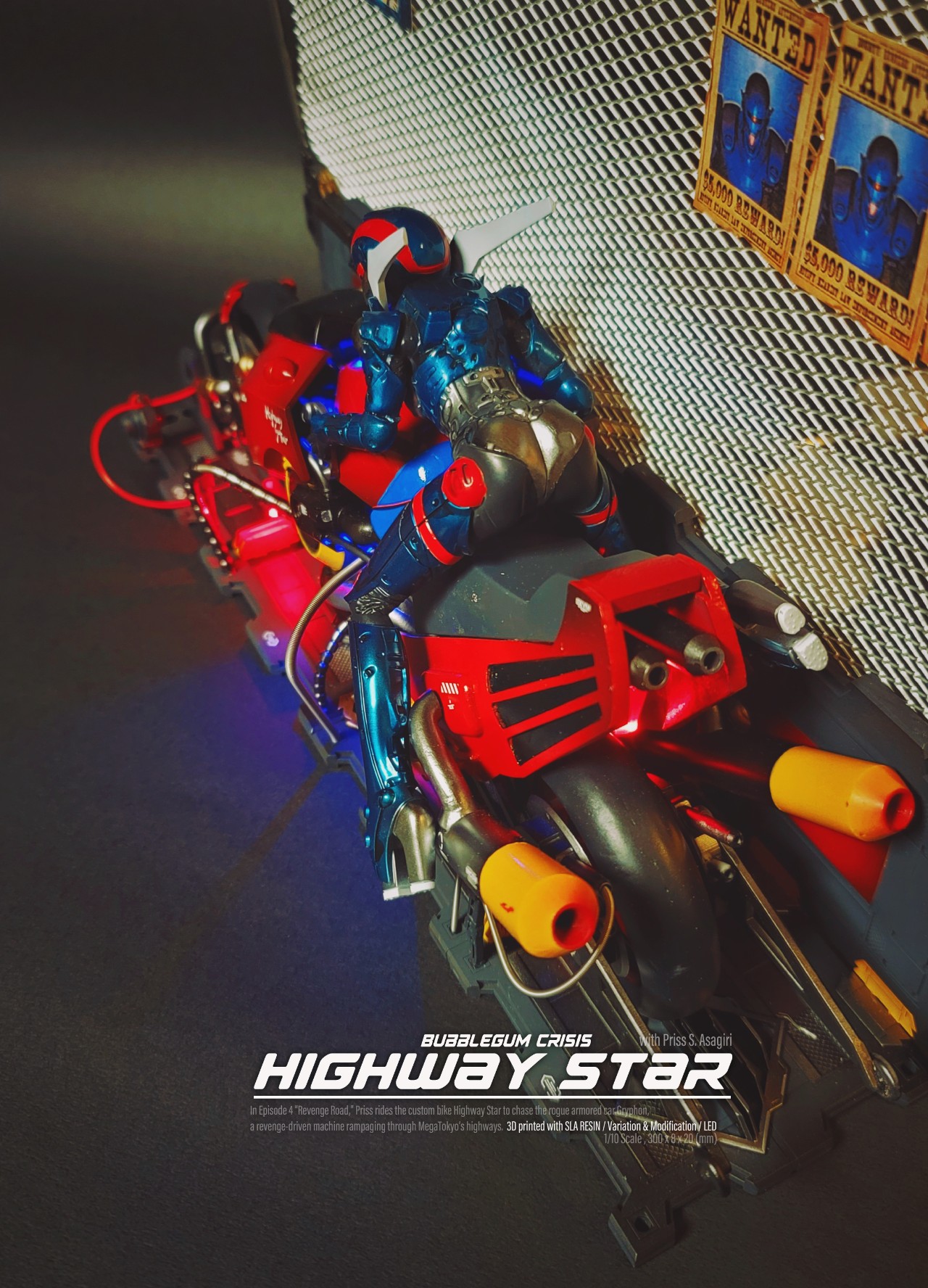 1987년작 OVA 버블검크라이시스의 에피소드 4편에 등장했던 슈퍼바이크 하이웨이스타입니다. 부머라고 불리우던 오류로 폭주하는 차량용 AI 메카닉이었던 '그리폰'을 추격하기 위해서 등장하는 메카닉이었습니다. 4화 액션의 메인이기도 했구요
