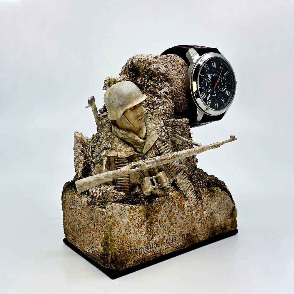 잘안쓰는 손목시계의 활용 목적으로 전체적으로 석재 조각상 같은 느낌으로 구성해 보았습니다