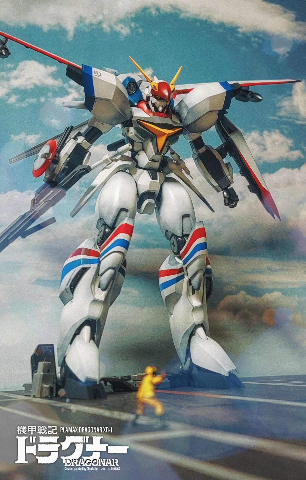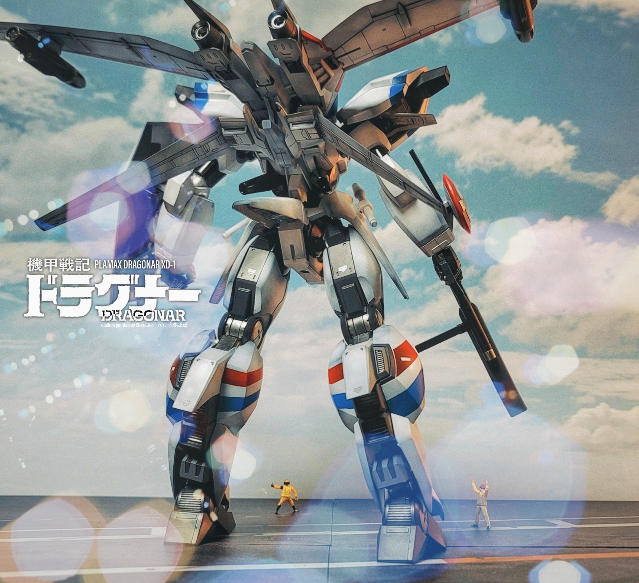 너무 크다 보니, 그냥 도색은 너무 밋밋하고 허전하기에 되도록이면 컬러분할을 다채롭게 반영해줬고, (원작을 크게 위배하지 않는 정도선에서) 기본적으로 함재기 웨더링을 흉내내서 반영해봤습니다. 특히 드라고나 오프닝을 구현해보고 싶어서 항모갑판 베이스와 캐터펄트설정, 그리고 수신호 가이드등 소소하게 설정해서 최대한 오리지널의 오마쥬처럼 설정했습니다.