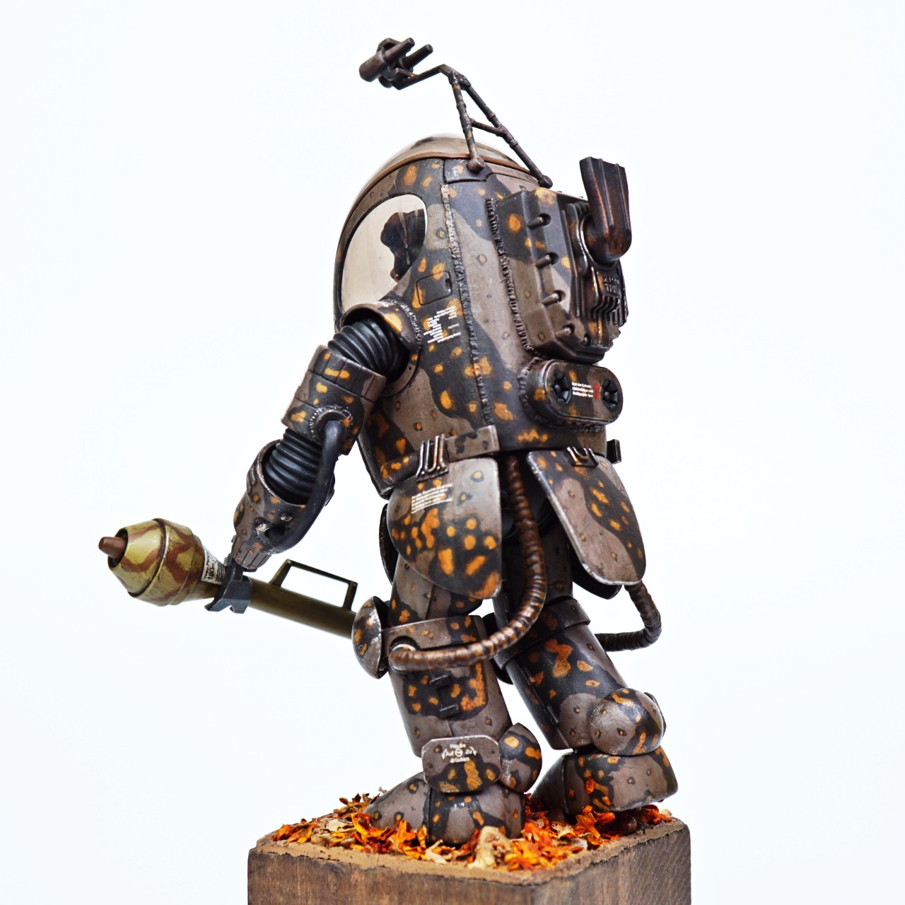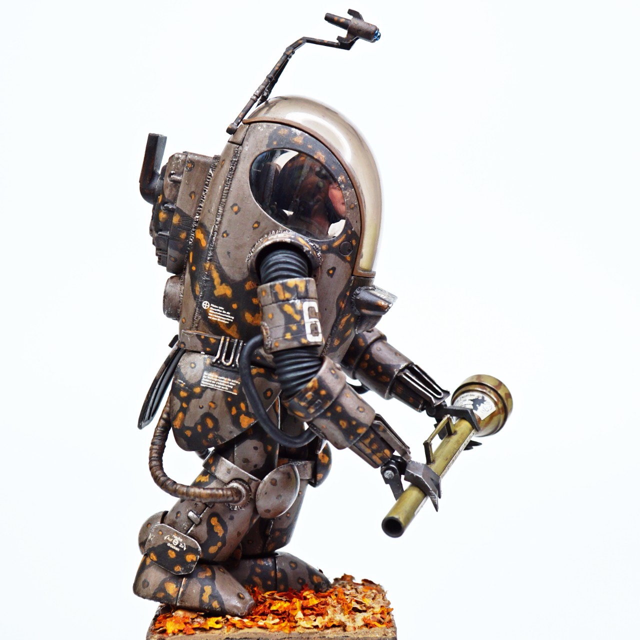 조립은 매뉴얼대로 조립을 하였고 약간의 3D, 옵션 파츠와 용접 라인을 넣어 디테일을 추가했습니다. 도색은 늘 그렇듯 아크릴 도료 기반의 붓 도색이고 평소 해보고 싶었던 가을 위장 무늬를 넣어보았습니다.