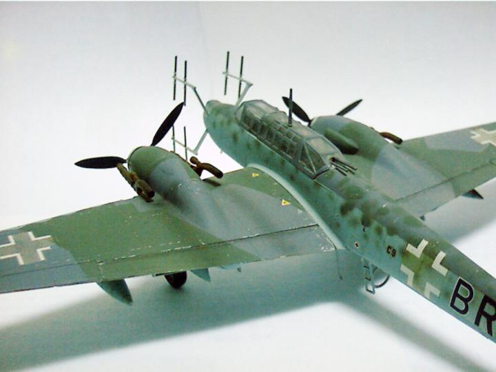 이건 Bf-110의 야간 전투기형인 G형입니다.기수 앞의 이상하게 생긴 안테나는 야간 전투용 레이더 안테나...