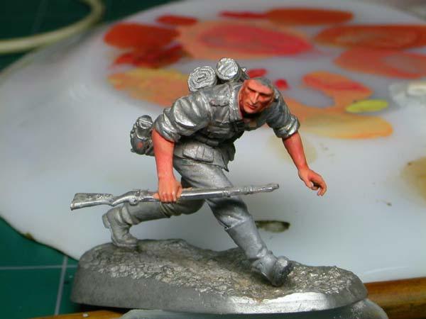 저같은경우에는 다칠해졌을때에중간정도색으로 처음에칠합니다 살색.빨강.노랑을 섞어서 약간 붉은끼가돌게칠합니다 칠하실때 한번에칠할려고하지않고 한번칠하고어느정도말르면한두번더칠하면밑색은됐네요. 그리고 한 한두시간 기달립니다 . 타미야에나멜일경우에는 한6시간 정도기다렸다가칠합니다.