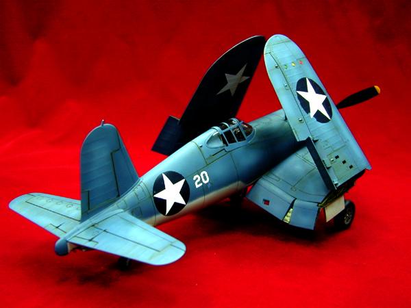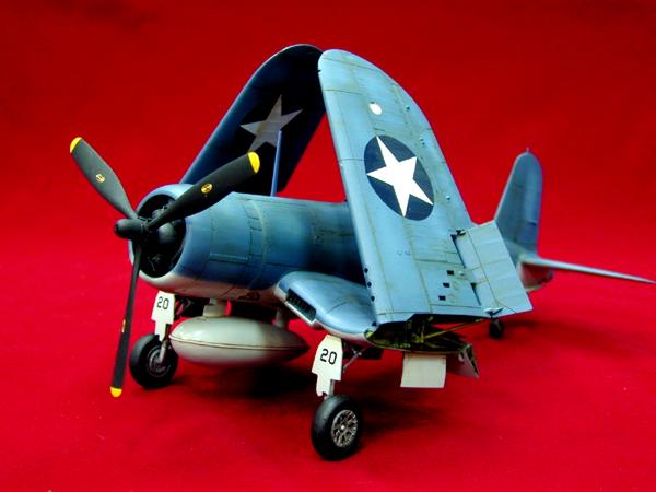 맨 앞에서 찍은 사진입니다. 모 동호회의 온라인 콘테스트에 출품하기 위해 찍었던 사진들로 사진이 모형에 비해 너무 잘나온 거 같습니다. 꺽인 주익이 잘 나타난 가장 코르세어 적인 사진입니다.