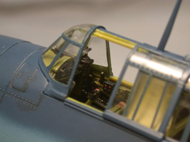 캐노피가 닫힌 상태에서 보이는 부분은 기체의 외부색으로 열린 상태에서만 보이는 부분은 인테리어 그린으로 칠했습니다.