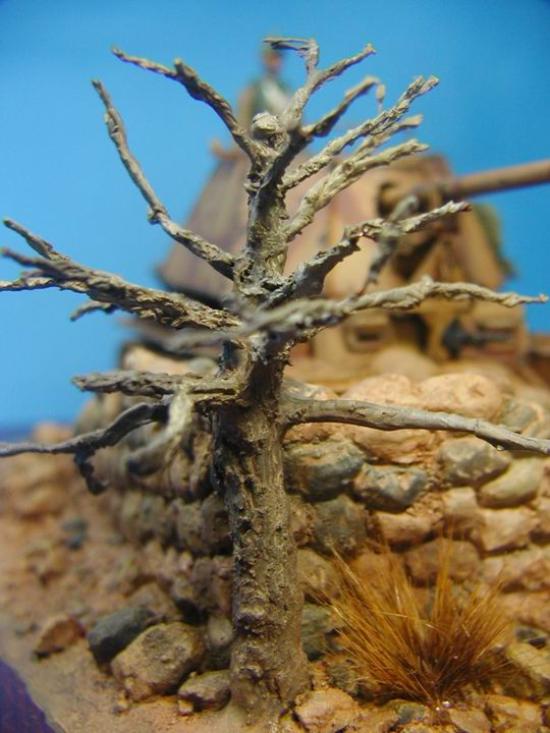 에나멜 선을 꼬아서 나무의 윤곽을 만든 뒤 퍼티를 발라 죽어버린 나무를 만들었습니다.