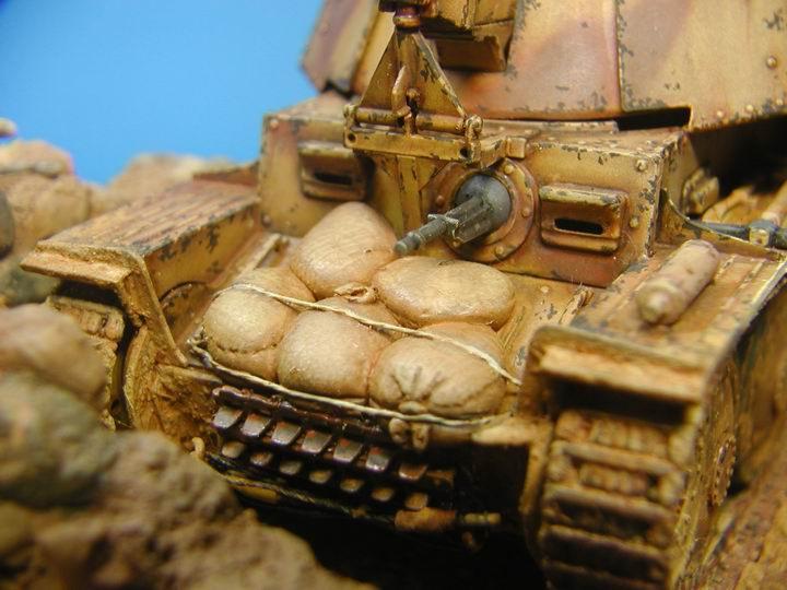 애폭시 퍼티로 빗어준 모래 주머니. 실제로 독일군은 모래 주머니 보다는 예비 케터필러를 증가장갑으로 많이 이용 했습니다.