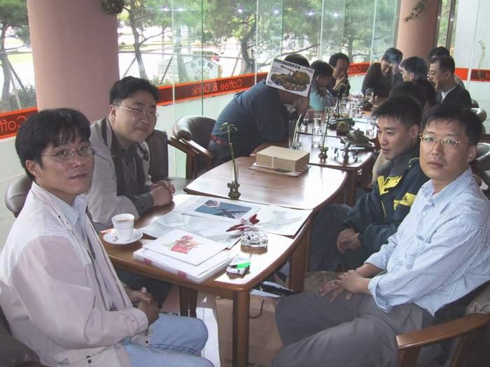 사진은 왼쪽부터 최지웅님(밀리전공), 송명수님, 이명국님(이 두분은 같은 고등학교에 다니시는 분인데, 너무 일찍가셔서 많은 이야기를 못 나누었읍니다), 음료수를 마시고 계시는 권순상님(에어로)이십니다. 아참 혹시 사진이 공개되면 않되는 범죄를 저질르신 분이 계시면 홈지기님에게 연락해서 사진 삭제를 요청하시기 바랍니다^^