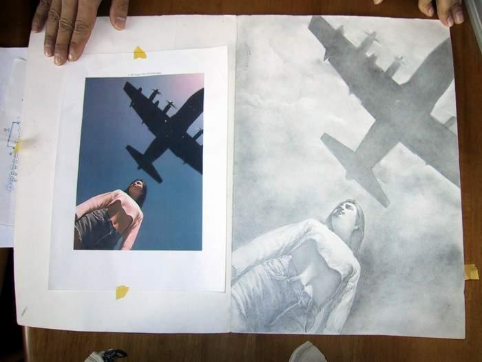 역시 이수창님의 허큘리스를 배경으로 배꼽티를 입고 폼잡는 아가씨를 그린 것입니다. 원본사진과의 차이점(?)을 한번 찾아 보시지요.