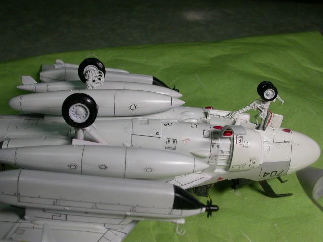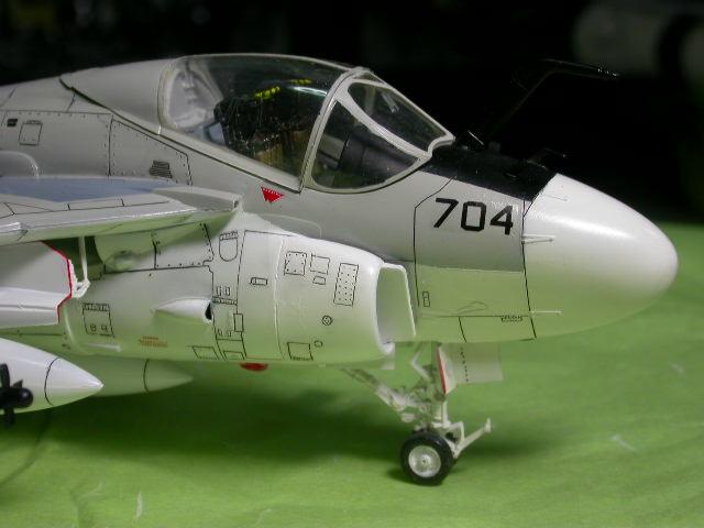 키트는 자세히 살펴보면 A-6E인트루더키트와 생긴것은 비슷하지만,주익 및 수직미익 ,패널라인 ,주익밑의 하드포인트 숫자및 기타 자잘한 부분에서 아주 많은 차이가 있읍니다..